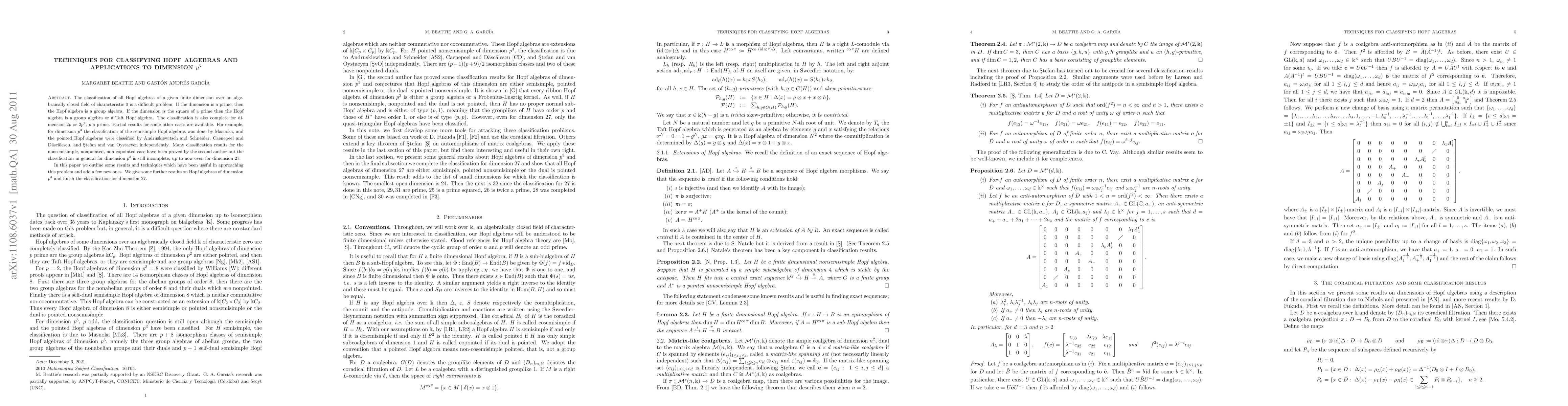 This paper presents techniques for classifying Hopf algebras of dimension \( p^3 \), offering a complete classification for dimension 27 and discussing the broader challenges in classifying such Hopf algebras. It builds on prior work by Masuoka and others, extending the classification to new cases.