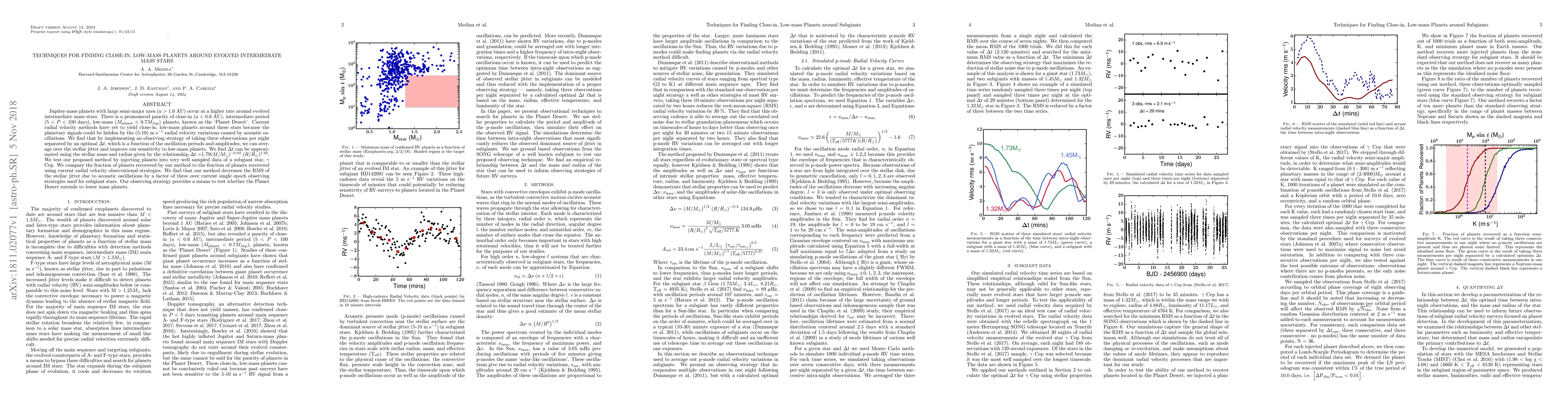 This paper proposes a new observing strategy to detect close-in, low-mass planets around subgiant stars, addressing the "Planet Desert" phenomenon. By averaging over stellar jitter from acoustic oscillations, the method significantly improves sensitivity to such planets, reducing the RMS jitter by a factor of three compared to current methods.