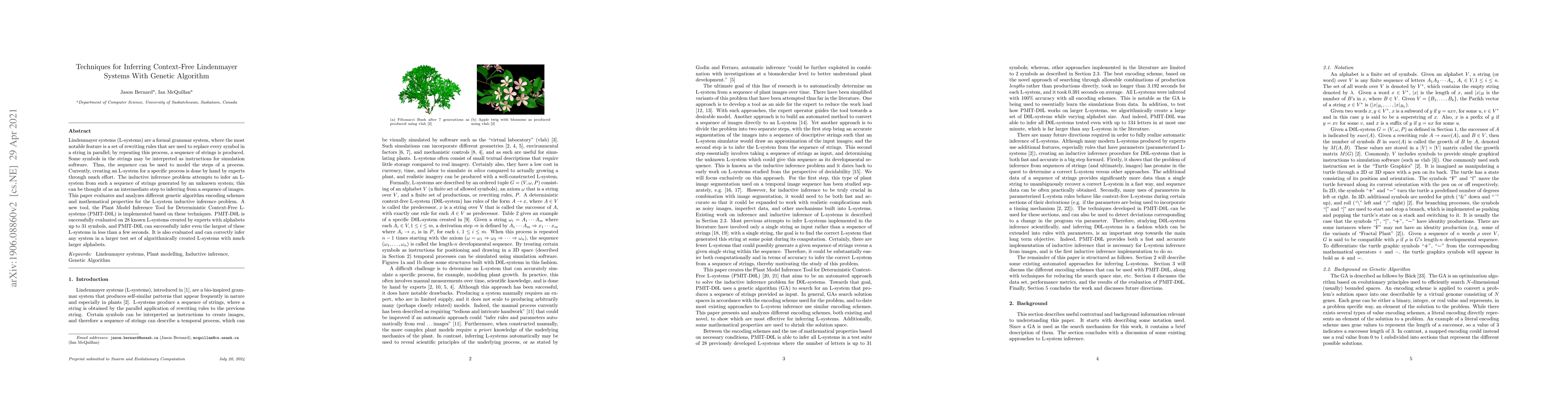 Lindenmayer systems (L-systems) are a formal grammar system, where the most notable feature is a set of rewriting rules that are used to replace every symbol in a string in parallel; by repeating this process, a sequence of strings is produced. Some symbols in the strings may be interpreted as instructions for simulation software. Thus, the sequence can be used to model the steps of a process. Currently, creating an L-system for a specific process is done by hand by experts through much effort. The inductive inference problem attempts to infer an L-system from such a sequence of strings generated by an unknown system; this can be thought of as an intermediate step to inferring from a sequence of images. This paper evaluates and analyzes different genetic algorithm encoding schemes and mathematical properties for the L-system inductive inference problem. A new tool, the Plant Model Inference Tool for Context-Free L-systems (PMIT-D0L) is implemented based on these techniques. PMIT-D0L has been successfully evaluated on 28 known L-systems, with alphabets up to 31 symbols and a total sum of 281 symbols across the rewriting rules. PMIT-D0L can infer even the largest of these L-systems in less than a few seconds.