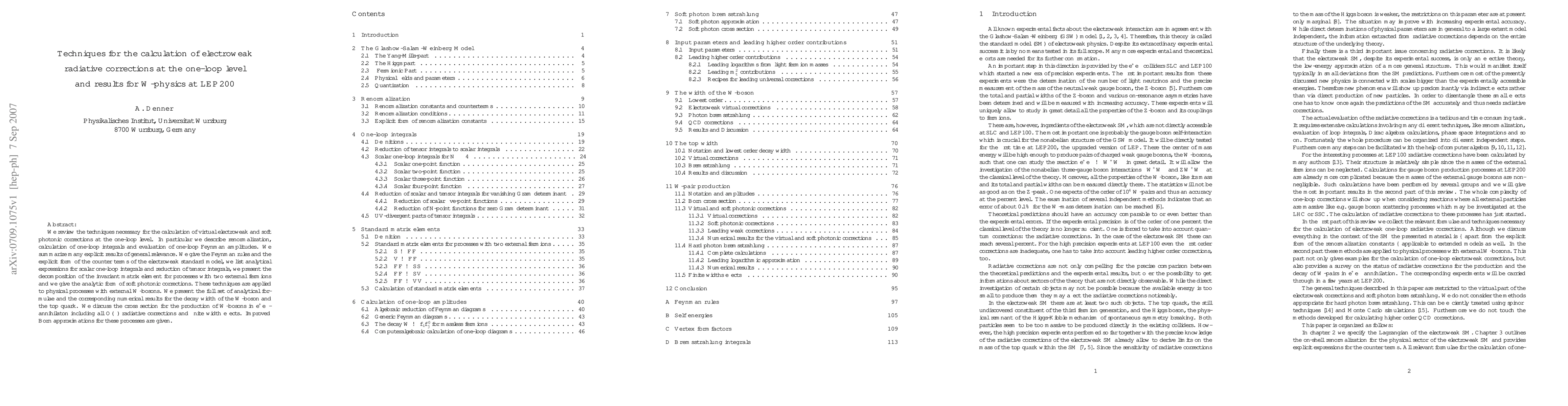 Researchers developed techniques for calculating electroweak radiative corrections in particle physics, applying them to processes involving W-bosons at LEP200, and providing analytical formulas for decay widths and cross sections.