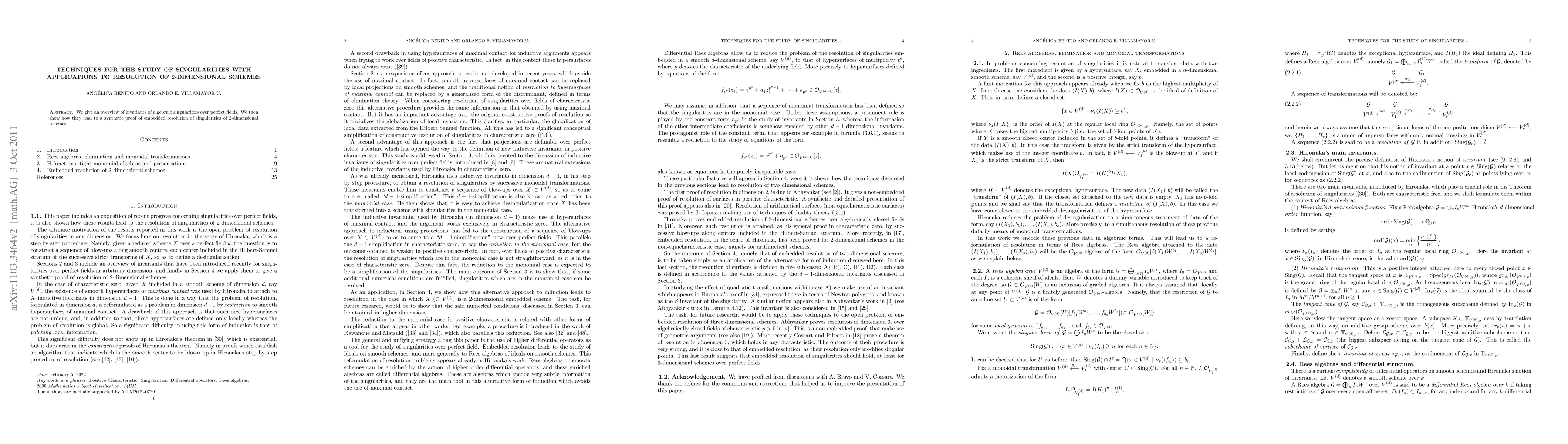 This paper provides an overview of invariants related to algebraic singularities over perfect fields and demonstrates their application in a synthetic proof for the embedded resolution of singularities in 2-dimensional schemes.
