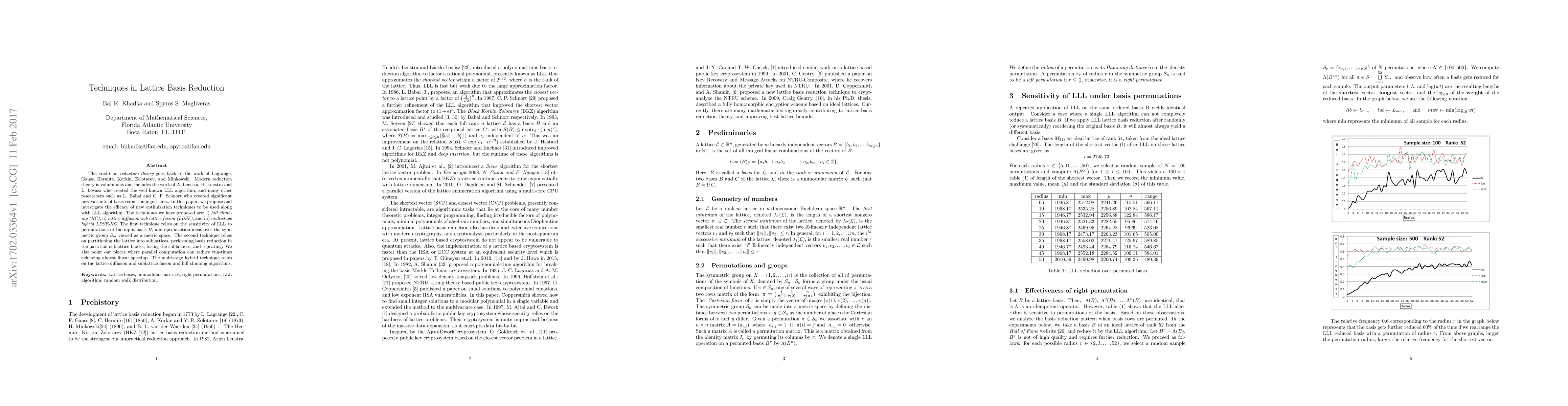 This paper introduces new optimization techniques—hill climbing, lattice diffusion-sub lattice fusion, and multistage hybrid LDSF-HC—to enhance the LLL algorithm for lattice basis reduction. It explores their efficacy and suggests parallel computation to achieve near-linear speedups.
