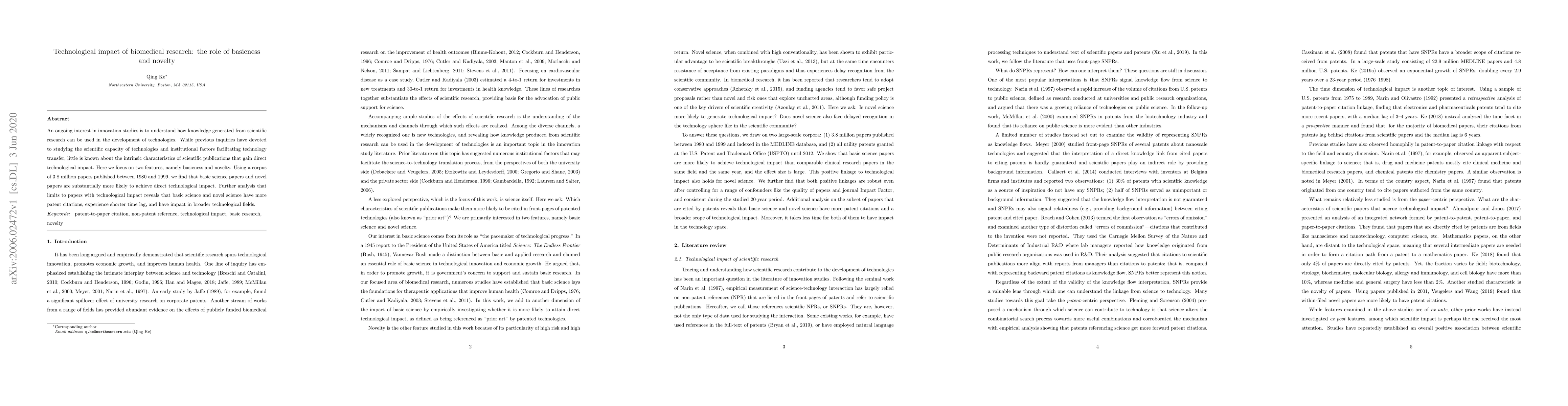 This research investigates how the intrinsic characteristics of scientific publications, specifically basicness and novelty, influence their direct technological impact. Findings from a corpus of 3.8 million papers show that basic science and novel papers are more likely to achieve technological impact, with these papers also having more patent citations, shorter time lags, and broader technological reach.
