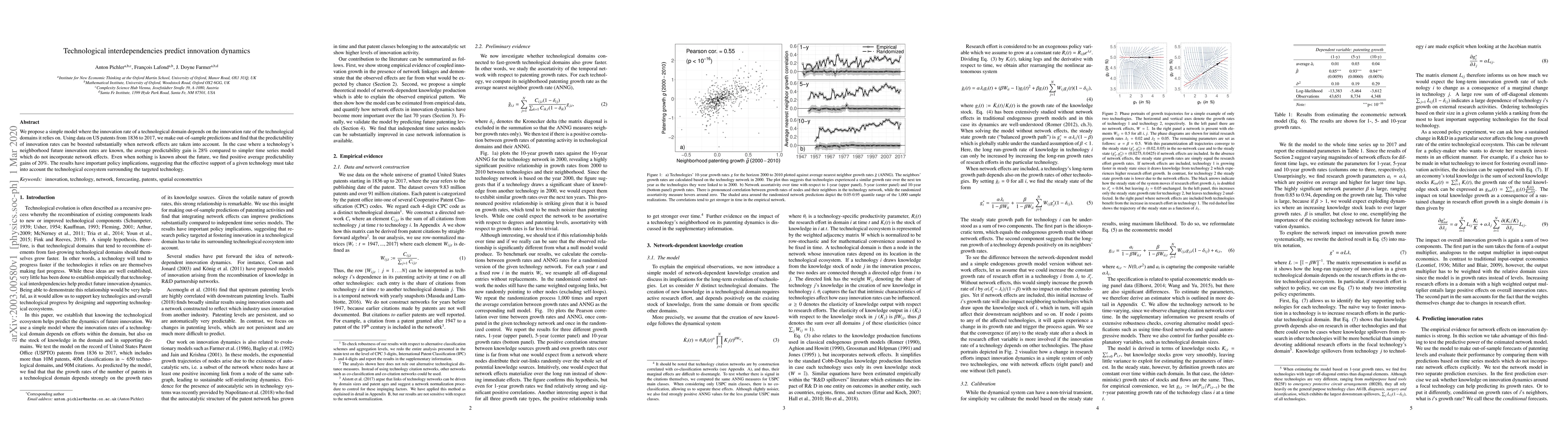 This paper develops a model showing that a technology's innovation rate is influenced by the rates of the technologies it depends on, leading to a 28% increase in predictability when network effects are considered compared to traditional time series models. The findings suggest that policy should support the broader technological ecosystem to enhance innovation.