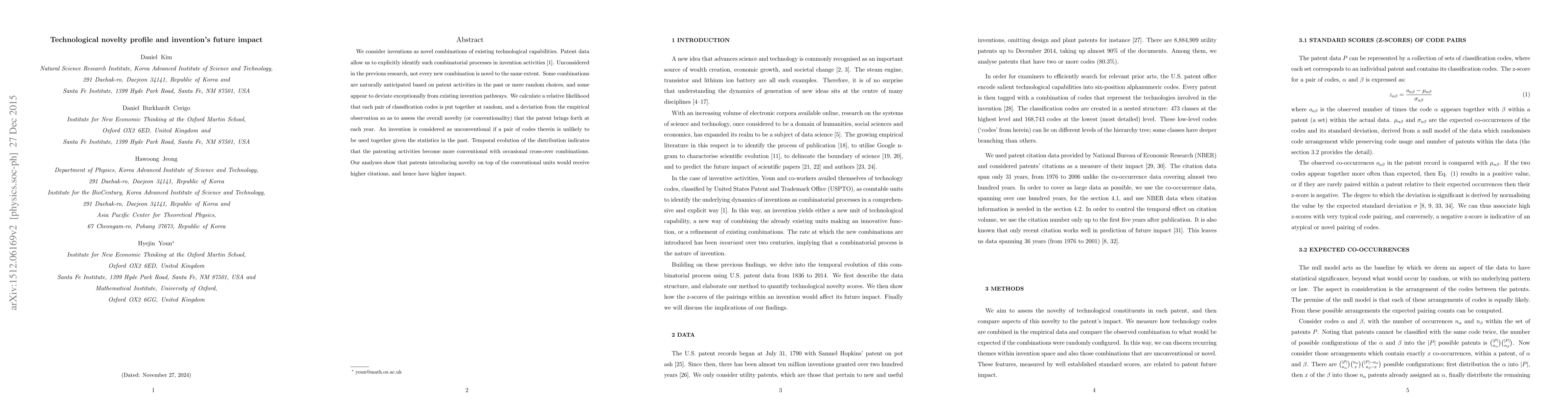 This paper examines how technological novelty in patents correlates with future impact, assessing the extent to which new combinations of existing technological capabilities are unconventional. It finds that patents with highly unconventional combinations tend to receive more citations, indicating greater future impact.