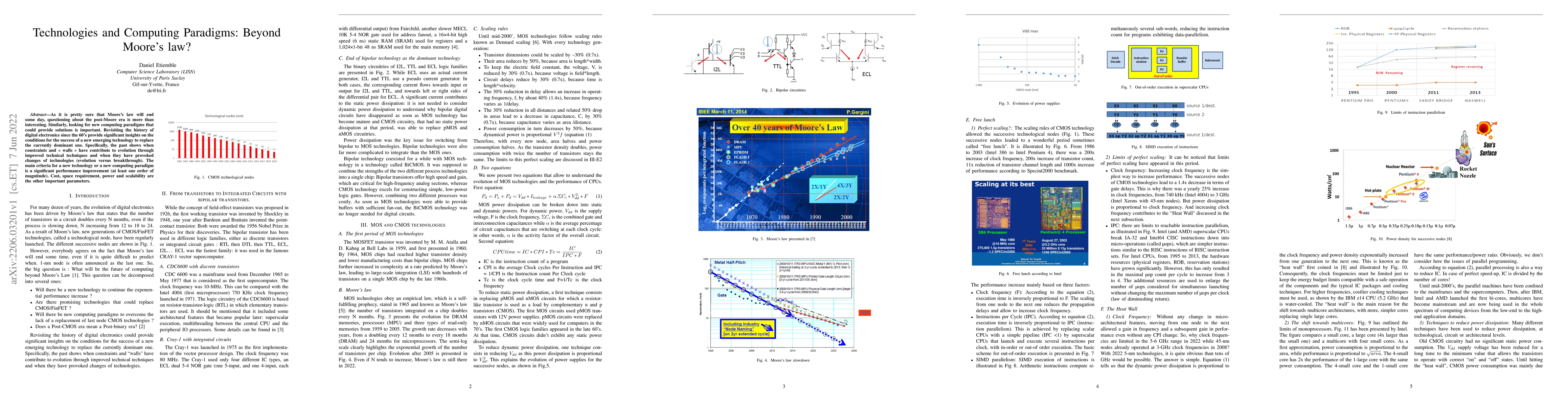 This paper explores the impending end of Moore's law and investigates potential new computing paradigms to replace it, emphasizing significant performance improvements and considering cost, space, power, and scalability. Historical insights into the evolution and breakthroughs in digital electronics since the 1960s offer valuable lessons for the development of future technologies.