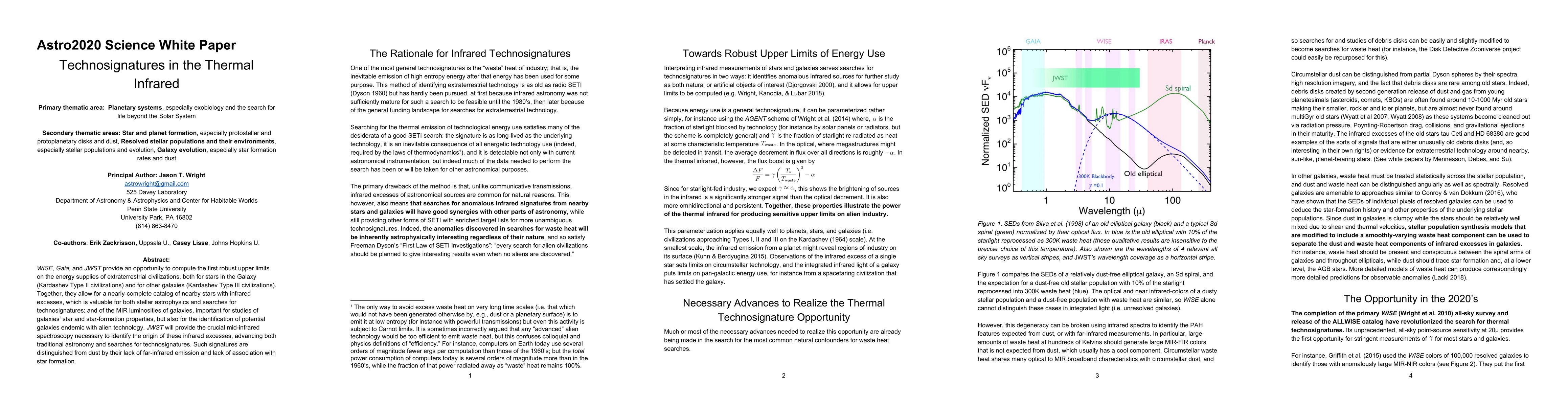 WISE, Gaia, and JWST provide an opportunity to compute the first robust upper limits on the energy supplies of extraterrestrial civilizations, both for stars in the Galaxy (Kardashev Type II civilizations) and for other galaxies (Kardashev Type III civilizations). Together, they allow for a nearly-complete catalog of nearby stars with infrared excesses, which is valuable for both stellar astrophysics and searches for technosignatures; and of the MIR luminosities of galaxies, important for studies of galaxies' star and star-formation properties, but also for the identification of potential galaxies endemic with alien technology. JWST will provide the crucial mid-infrared spectroscopy necessary to identify the origin of these infrared excesses, advancing both traditional astronomy and searches for technosignatures. Such signatures are distinguished from dust by their lack of far-infrared emission and lack of association with star formation.
