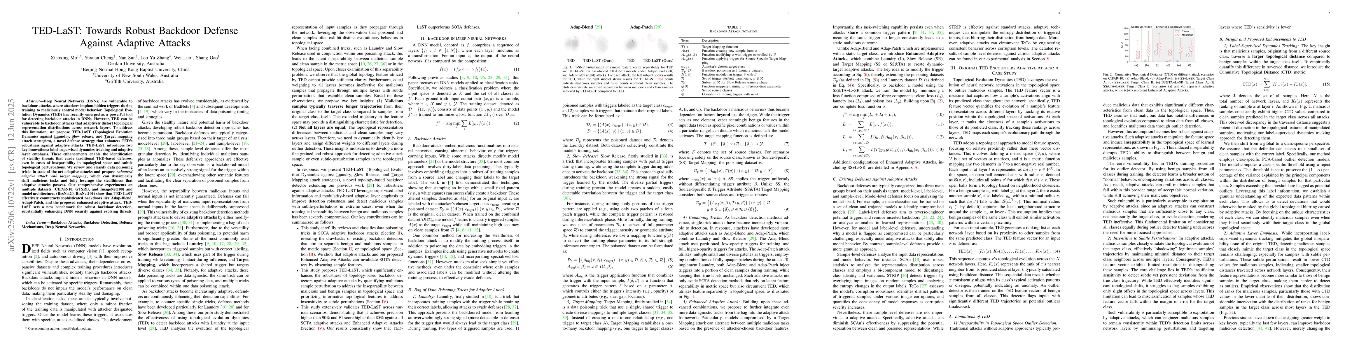Researchers propose TED-LaST, a robust backdoor defense against adaptive attacks in deep neural networks, enhancing detection against evolving threats.