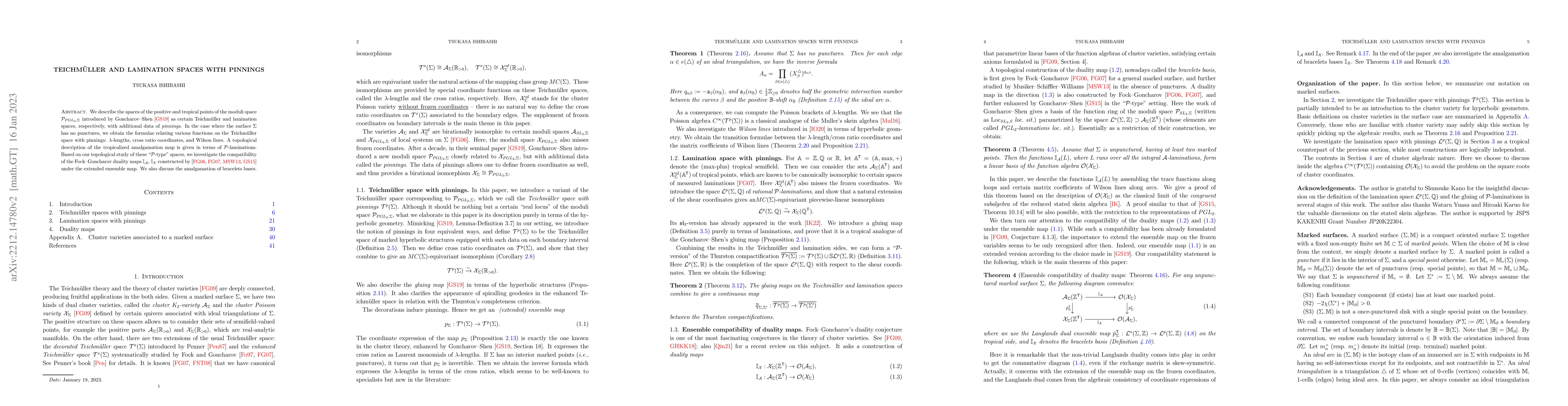 This paper explores the moduli spaces $\mathcal{P}_{PGL_2,\Sigma}$ with pinnings, identifying them as Teichmüller and lamination spaces. It derives relationships between $\lambda$-lengths, cross ratio coordinates, and Wilson lines for surfaces without punctures and describes a tropicalized amalgamation map using $\mathcal{P}$-laminations. It further investigates the compatibility of Fock-Goncharov duality maps under the extended ensemble map and discusses the amalgamation of bracelet bases.