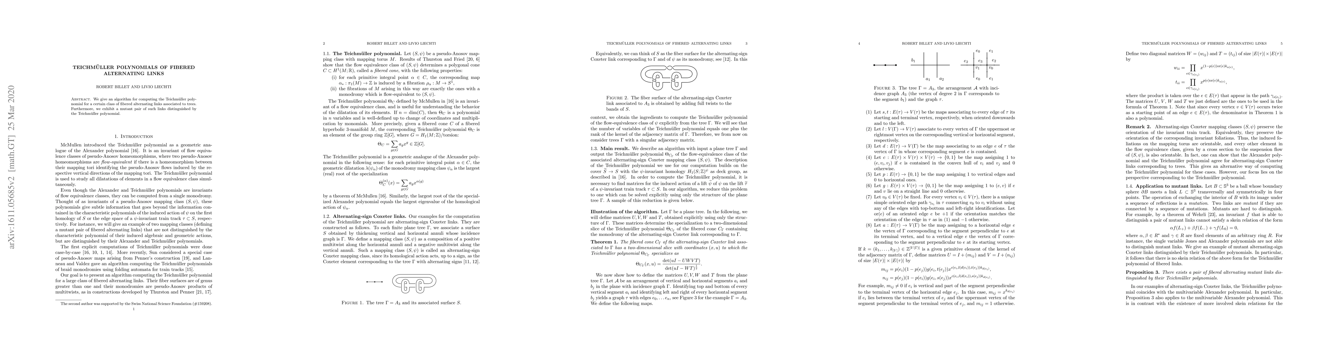 The paper presents an algorithm to compute Teichmüller polynomials for a class of fibered alternating links related to trees and identifies a mutant pair of such links distinguishable by their Teichmüller polynomials.