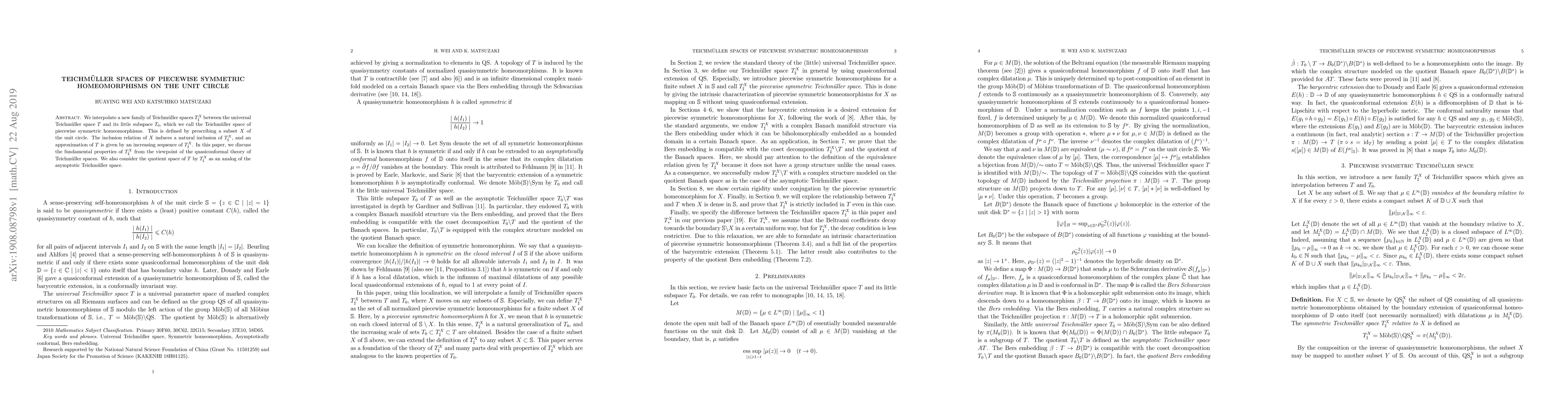 We interpolate a new family of Teichm\"uller spaces $T_{\sharp}^X$ between the universal Teichm\"uller space $T$ and its little subspace $T_0$, which we call the Teichm\"uller space of piecewise symmetric homeomorphisms. This is defined by prescribing a subset $X$ of the unit circle. The inclusion relation of $X$ induces a natural inclusion of $T_{\sharp}^X$, and an approximation of $T$ is given by an increasing sequence of $T_{\sharp}^X$. In this paper, we discuss the fundamental properties of $T_{\sharp}^X$ from the viewpoint of the quasiconformal theory of Teichm\"uller spaces. We also consider the quotient space of $T$ by $T_{\sharp}^X$ as an analog of the asymptotic Teichm\"uller space.