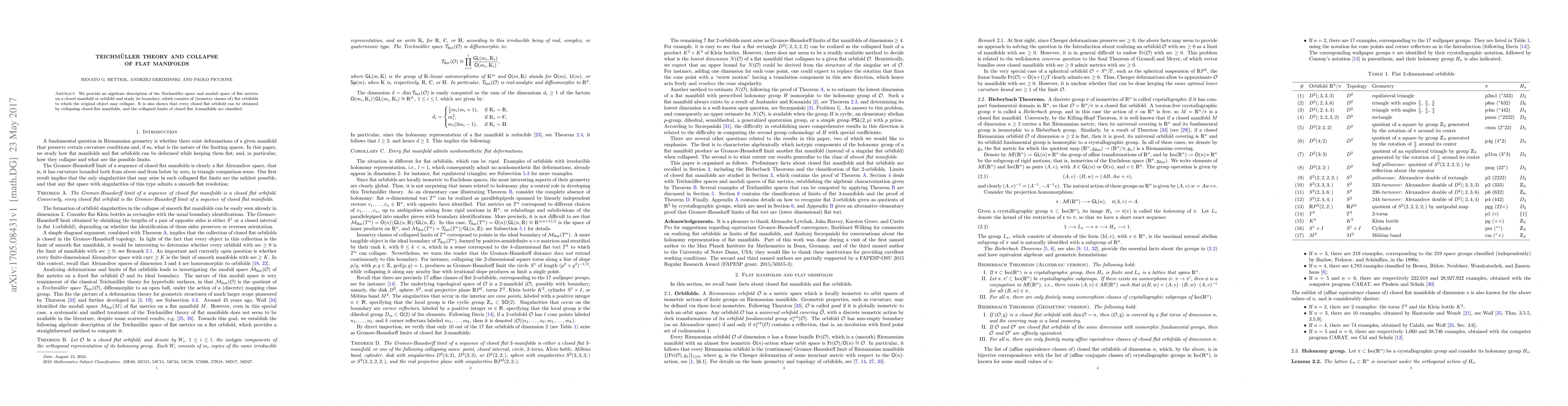 We provide an algebraic description of the Teichm\"uller space and moduli space of flat metrics on a closed manifold or orbifold and study its boundary, which consists of (isometry classes of) flat orbifolds to which the original object may collapse. It is also shown that every closed flat orbifold can be obtained by collapsing closed flat manifolds, and the collapsed limits of closed flat 3-manifolds are classified.