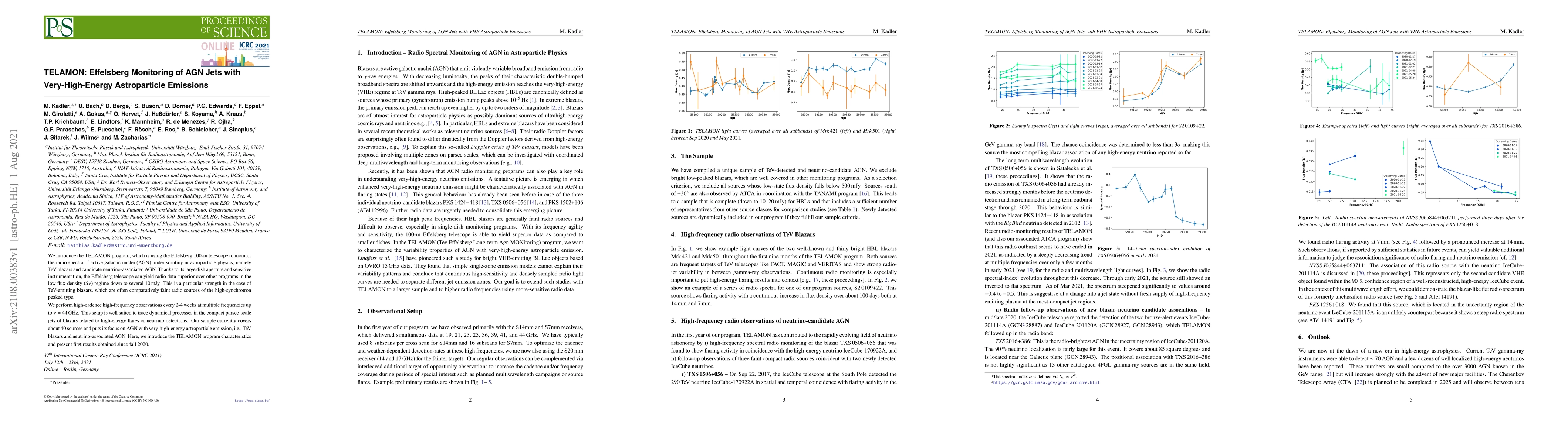 The TELAMON program utilizes the Effelsberg 100-m telescope to monitor the radio spectra of TeV blazars and neutrino-associated AGN, providing high-cadence observations to trace dynamical processes in their jets. Initial results since fall 2020 highlight the program's focus on AGN with very-high-energy astroparticle emissions.