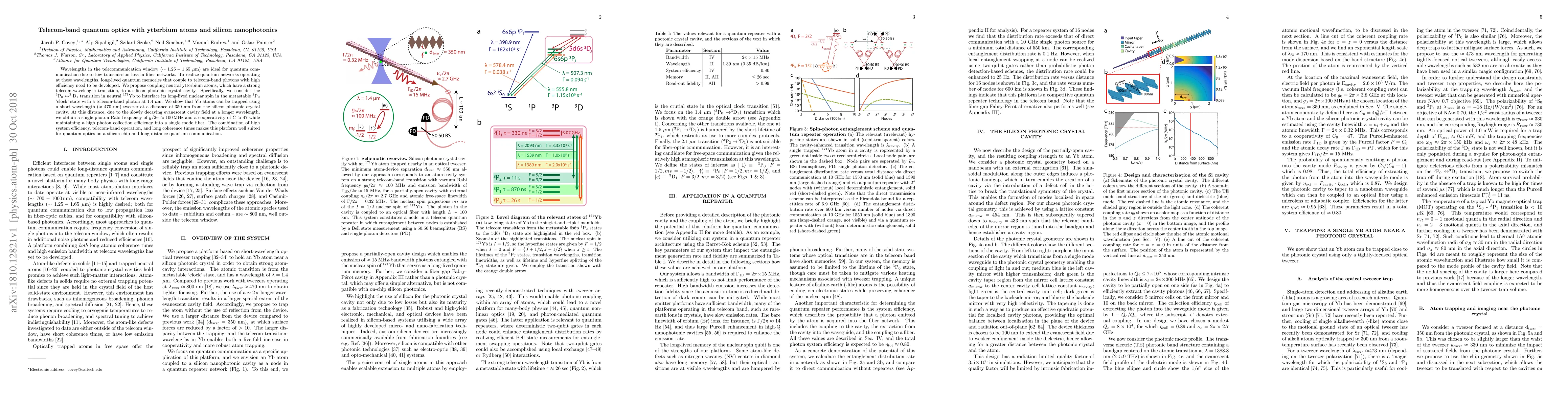 This paper proposes a method to couple ytterbium atoms with silicon photonic crystal cavities for efficient telecom-band quantum optics, achieving a high single-photon Rabi frequency and cooperativity. The integration of long-lived quantum memories with telecom-band photons is poised to enhance long-distance quantum communication.