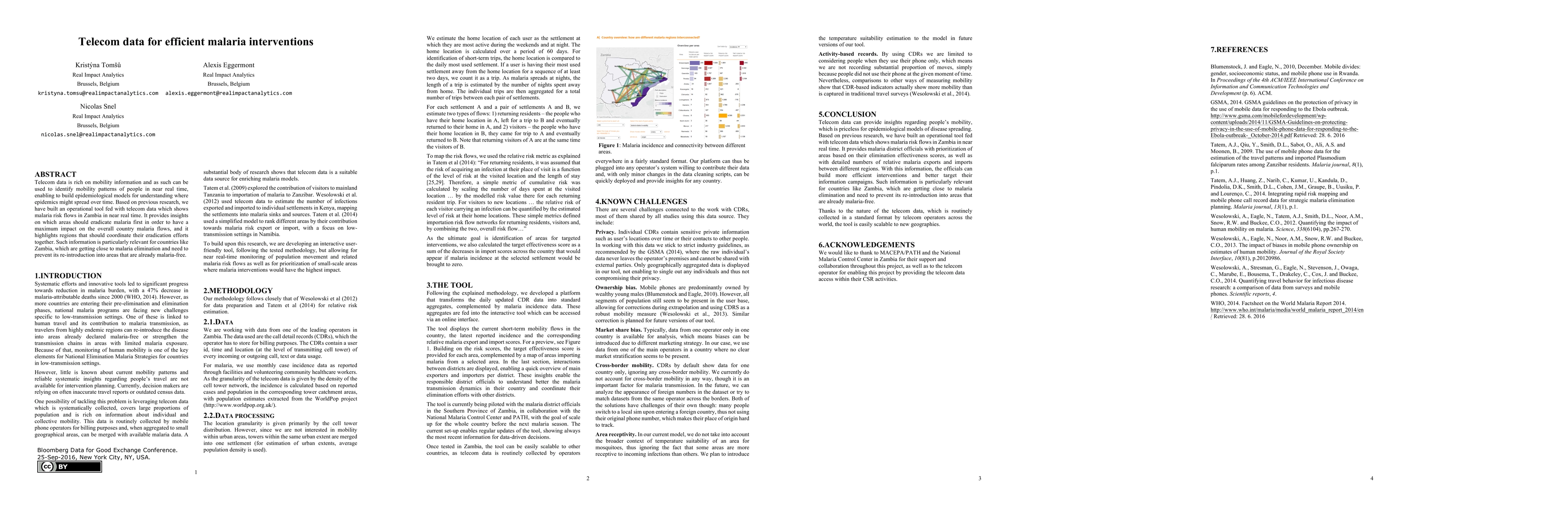 This paper presents a tool utilizing telecom data to track malaria risk flows in Zambia in near real time, identifying optimal areas for eradication to maximize impact and prevent re-introduction in regions nearing elimination. The tool highlights coordinated efforts needed in specific regions for effective malaria control.