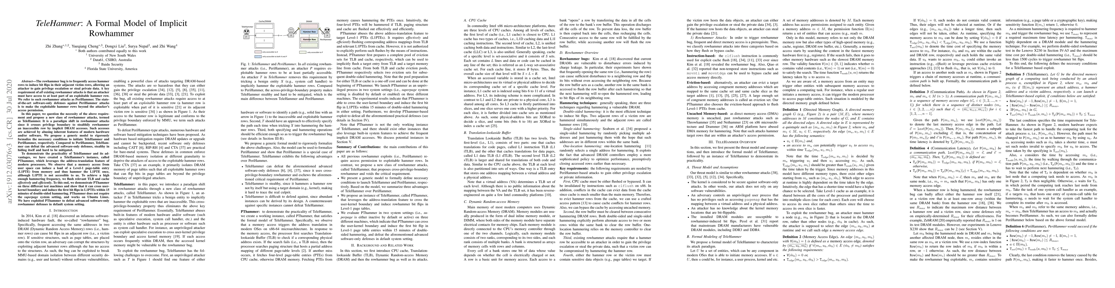 The rowhammer bug allows an attacker to gain privilege escalation or steal private data. A key requirement of all existing rowhammer attacks is that an attacker must have access to at least part of an exploitable hammer row. We refer to such rowhammer attacks as PeriHammer. The state-of-the-art software-only defenses against PeriHammer attacks is to make the exploitable hammer rows beyond the attacker's access permission. In this paper, we question the necessity of the above requirement and propose a new class of rowhammer attacks, termed as TeleHammer. It is a paradigm shift in rowhammer attacks since it crosses privilege boundary to stealthily rowhammer an inaccessible row by implicit DRAM accesses. Such accesses are achieved by abusing inherent features of modern hardware and or software. We propose a generic model to rigorously formalize the necessary conditions to initiate TeleHammer and PeriHammer, respectively. Compared to PeriHammer, TeleHammer can defeat the advanced software-only defenses, stealthy in hiding itself and hard to be mitigated. To demonstrate the practicality of TeleHammer and its advantages, we have created a TeleHammer's instance, called PThammer, which leverages the address-translation feature of modern processors. We observe that a memory access from user space can induce a load of a Level-1 page-table entry (L1PTE) from memory and thus hammer the L1PTE once, although L1PTE is not accessible to us. To achieve a high enough hammering frequency, we flush relevant TLB and cache effectively and efficiently. To this end, we demonstrate PThammer on three different test machines and show that it can cross user-kernel boundary and induce the first bit flips in L1PTEs within 15 minutes of double-sided PThammering. We have exploited PThammer to defeat advanced software-only rowhammer defenses in default system setting.