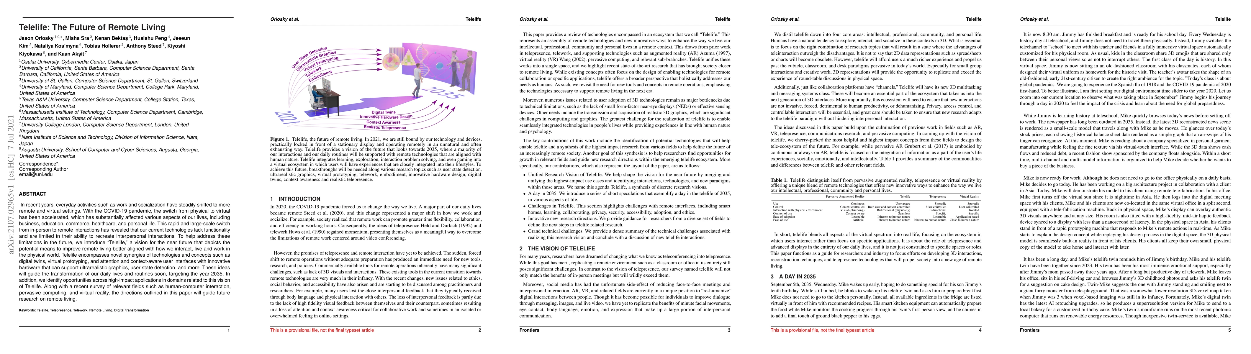 Researchers envision a future where technology improves remote living with enhanced graphics, user state detection, and innovative interfaces, aiming to recreate in-person interactions by 2035. This concept, called Telelife, seeks to address limitations in current technologies and guide future research on remote living.