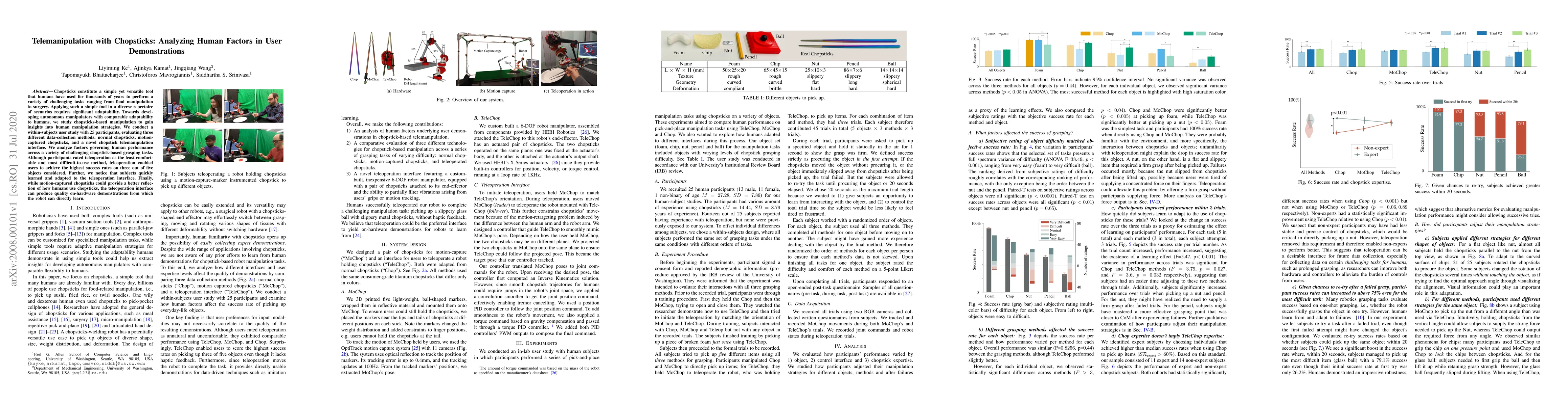 Researchers studied human factors in using chopsticks for manipulation tasks to develop more adaptable robots, finding that users preferred traditional chopsticks but achieved high success rates with teleoperation interfaces.