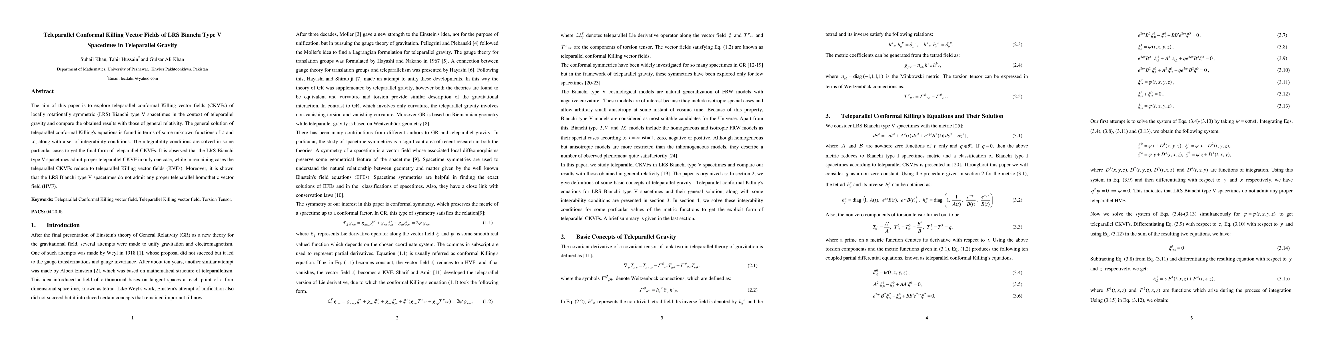 The aim of this paper is to explore teleparallel conformal Killing vector fields (CKVFs) of locally rotationally symmetric (LRS) Bianchi type V spacetimes in the context of teleparallel gravity and compare the obtained results with those of general relativity. The general solution of teleparallel conformal Killing's equations is found in terms of some unknown functions of t and x , along with a set of integrability conditions. The integrability conditions are solved in some particular cases to get the final form of teleparallel CKVFs. It is observed that the LRS Bianchi type V spacetimes admit proper teleparallel CKVF in only one case, while in remaining cases the teleparallel CKVFs reduce to teleparallel Killing vector fields (KVFs). Moreover, it is shown that the LRS Bianchi type V spacetimes do not admit any proper teleparallel homothetic vector field (HVF).