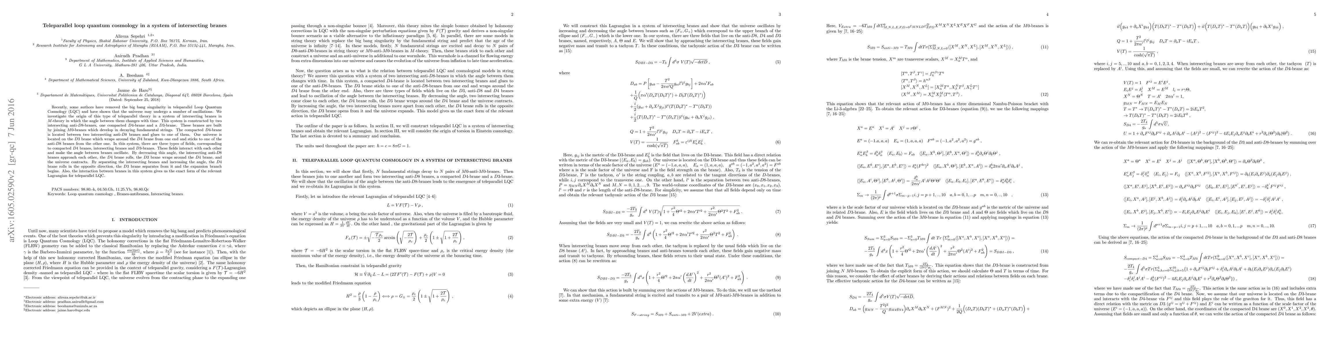 Recently, some authors have removed the big bang singularity in teleparallel Loop Quantum Cosmology (LQC) and have shown that the universe may undergo a number of oscillations. We investigate the origin of this type of teleparallel theory in a system of intersecting branes in M-theory in which the angle between them changes with time. This system is constructed by two intersecting anti-D8-branes, one compacted D4-brane and the other a D3-brane. These branes are built by joining M0-branes which develop in decaying fundamental strings. The compacted D4-brane is located between two intersecting anti-D8 branes and glues to one of them. Our universe is located on the D3 brane which wraps the D4 brane from one end and sticks to one of the anti-D8 branes from another one. In this system, there are three types of fields, corresponding to compacted D4 branes, intersecting branes and D3-branes. These fields interact with each other and make the angle between branes oscillate. By decreasing this angle and approaching the intersecting anti-D8 branes towards each other, the D4 brane rolls, the D3 brane wraps around the D4 brane, and t he universe contracts. By separating the intersecting branes and increasing the angle, the D4 brane rolls in the opposite direction, the D3 brane separates from it and the expansion branch begins. Also, the interaction between branes in this system gives us the exact form of the relevant Lagrangian for teleparallel LQC.