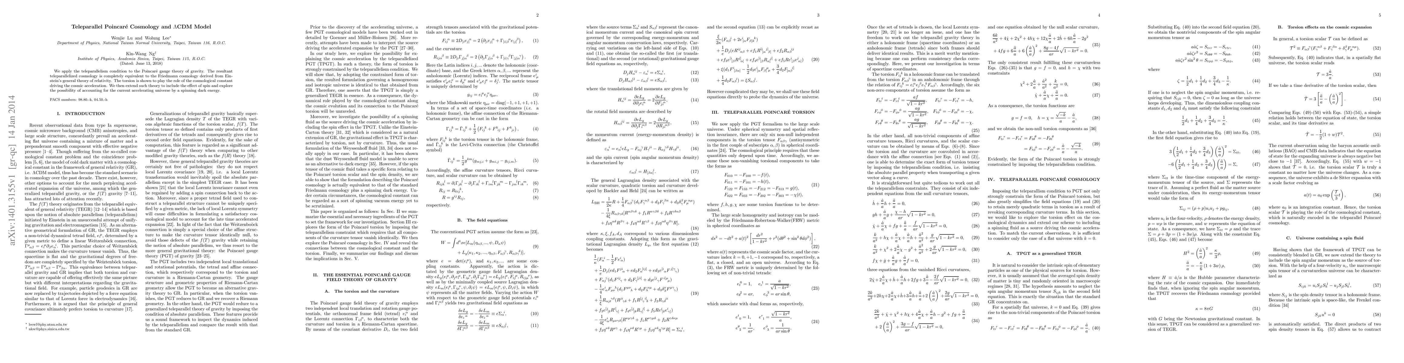 Summary: This paper explores a teleparallelized version of Poincaré gauge theory, demonstrating its equivalence to Friedmann cosmology from general relativity, where torsion functions as a cosmological constant. The study further investigates the implications of spin, suggesting a model for cosmic acceleration driven by spinning dark energy.