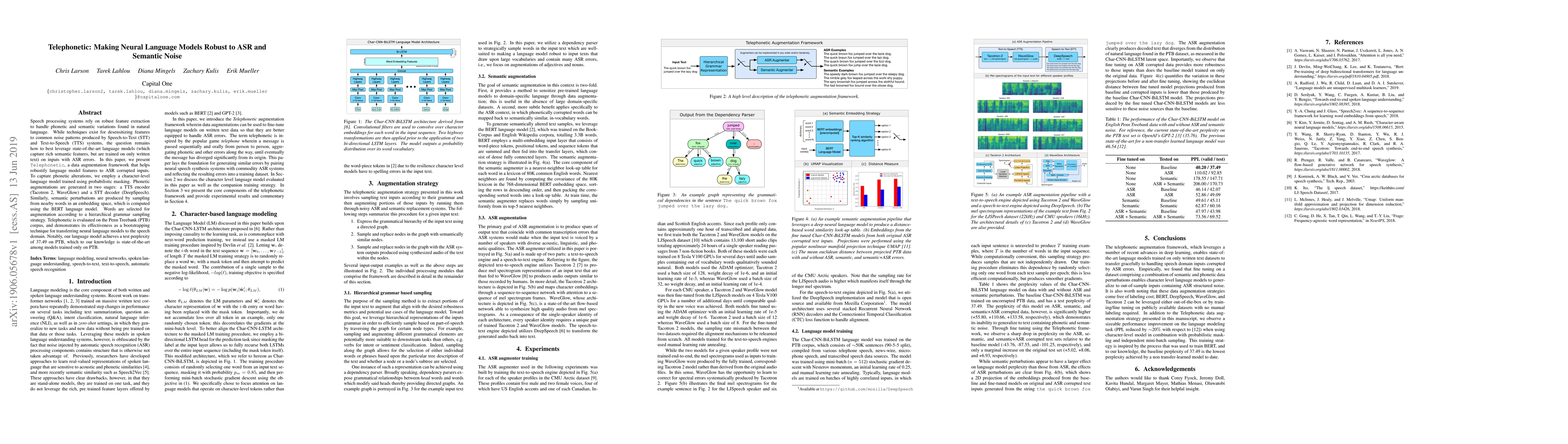 This paper introduces Telephonetic, a data augmentation framework to enhance neural language models' robustness against Automatic Speech Recognition (ASR) and semantic noise. It employs a character-level language model and a two-stage TTS encoder-STT decoder approach to generate phonetic and semantic perturbations, achieving state-of-the-art performance on the Penn Treebank.
