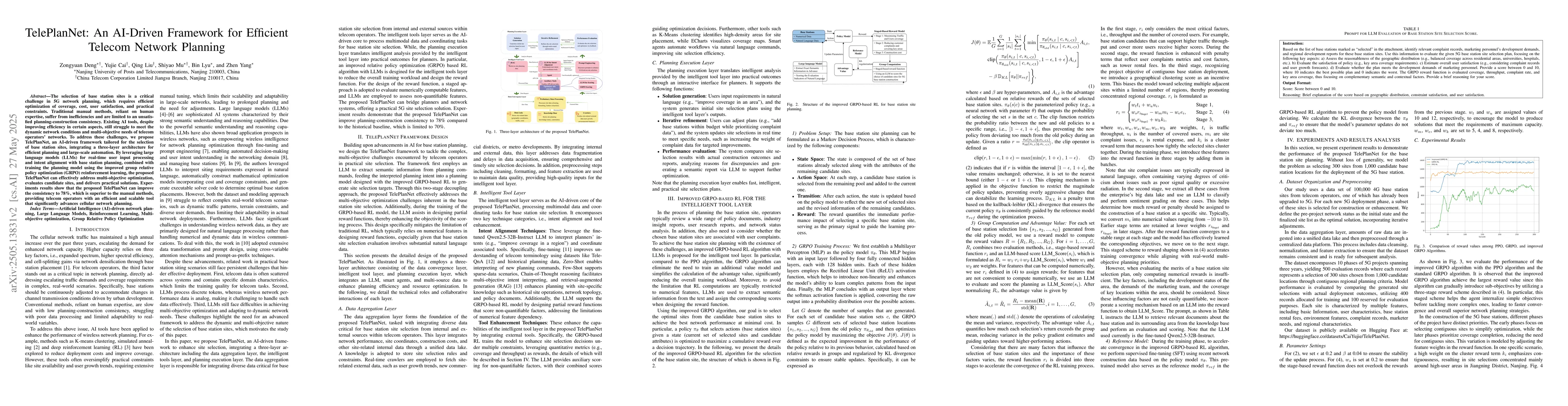 The research proposes TelePlanNet, an AI-driven framework with a three-layer architecture for base station site selection, integrating large language models (LLMs) for real-time user input processing and reinforcement learning (GRPO) for planning model training.