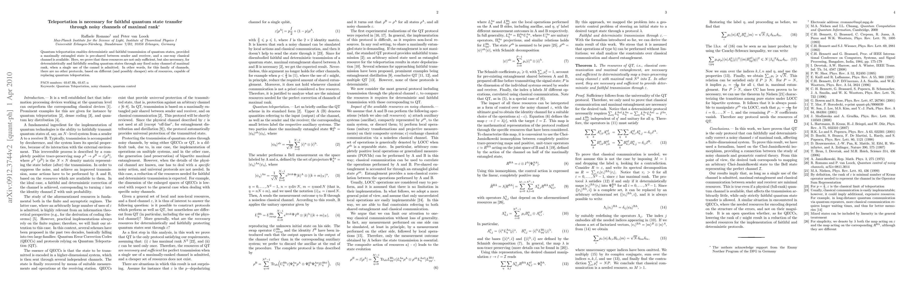 Quantum teleportation is essential for faithful quantum state transfer through noisy channels of maximal rank. No alternative protocols exist that can replace quantum teleportation for this purpose, given the necessity of a maximally entangled state and a classical channel.