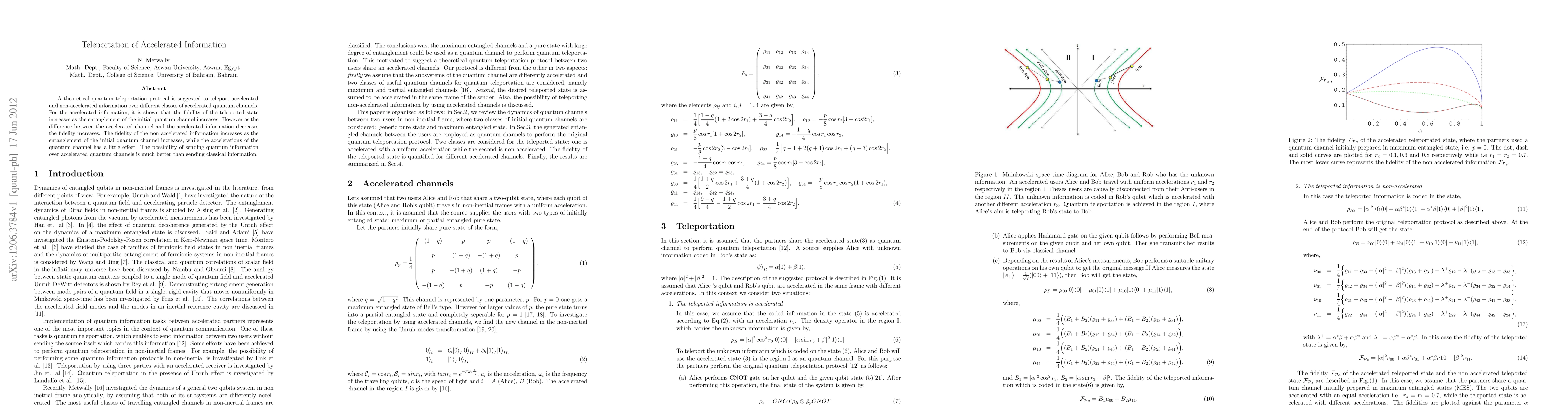 This paper proposes a quantum teleportation protocol for both accelerated and non-accelerated information through various quantum channels. It shows that fidelity improves with increased entanglement for both types, but accelerated information benefits more when the channel's acceleration matches that of the information. Sending quantum information over accelerated channels is more feasible than classical information.