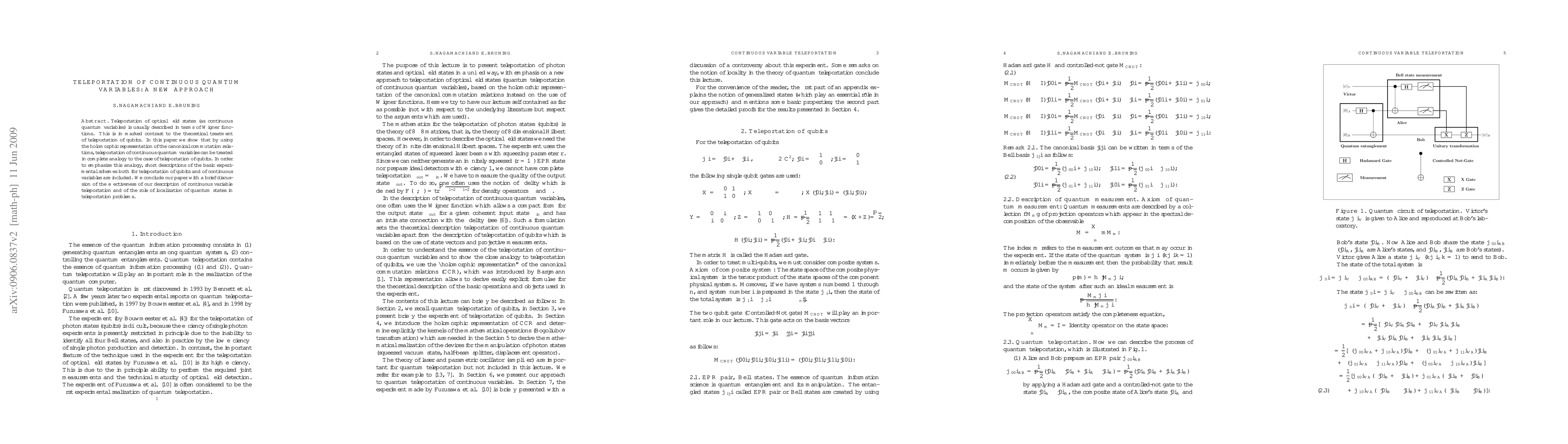 Teleportation of optical field states (as continuous quantum variables) is usually described in terms of Wigner functions. This is in marked contrast to the theoretical treatment of teleportation of qubits. In this paper we show that by using the holomorphic representation of the canonical commutation relations, teleportation of continuous quantum variables can be treated in complete analogy to the case of teleportation of qubits. In order to emphasize this analogy, short descriptions of the basic experimental schemes both for teleportation of qubits and of continuous variables are included. We conclude our paper with a brief discussion of the effectiveness of our description of continuous variable teleportation and of the role of localization of quantum states in teleportation problems.