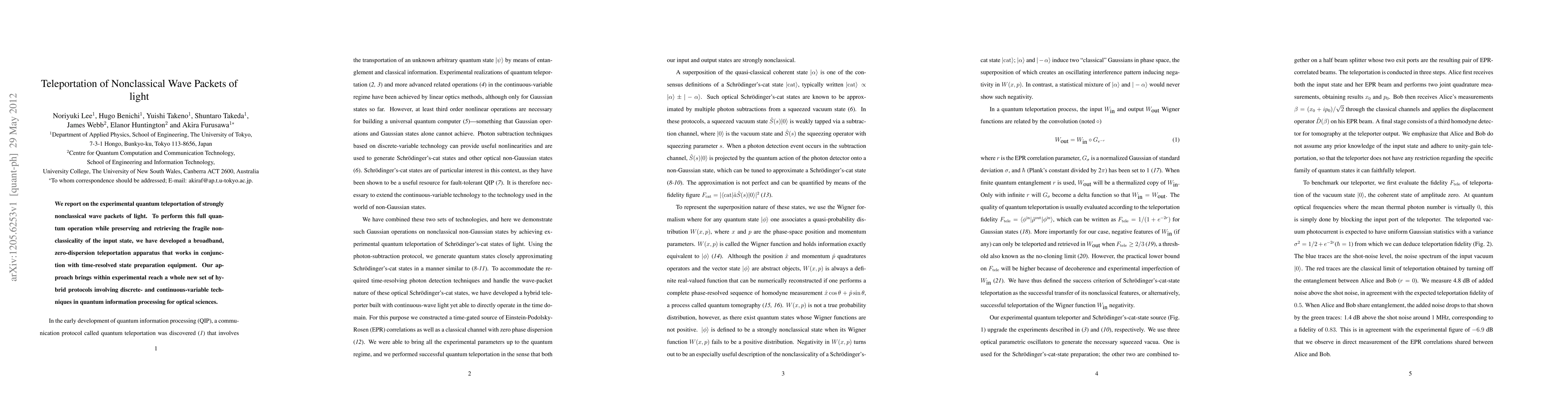 This paper details the successful experimental quantum teleportation of strongly nonclassical wave packets of light, utilizing a broadband, zero-dispersion apparatus to preserve the fragile non-classicality of the input state, thereby advancing hybrid quantum information protocols in optical sciences.