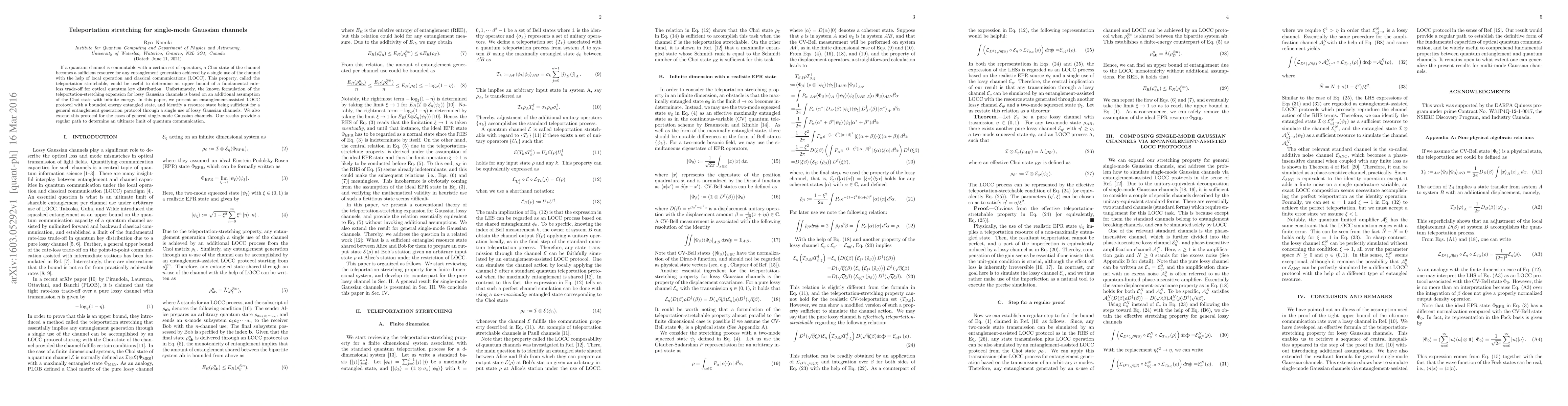 If a quantum channel is commutable with a certain set of operators, a Choi state of the channel becomes a sufficient resource for any entanglement generation achieved by a single use of the channel with the help of local operation and classical communications (LOCC). This property, called the teleportation stretchable, could be useful to determine an upper bound of a fundamental rate-loss trade-off for optical quantum key distribution. Unfortunately, the known formulation of the teleportation-stretching expansion for lossy Gaussian channels is based on an additional assumption of the Choi state with infinite energy. In this paper, we present an entanglement-assisted LOCC protocol with a bounded energy entangled state, and identify a resource state being sufficient for a general entanglement generation protocol through a single use of lossy Gaussian channels. We also extend this protocol for the cases of general single-mode Gaussian channels. Our results provide a regular path to determine an ultimate limit of quantum communication.