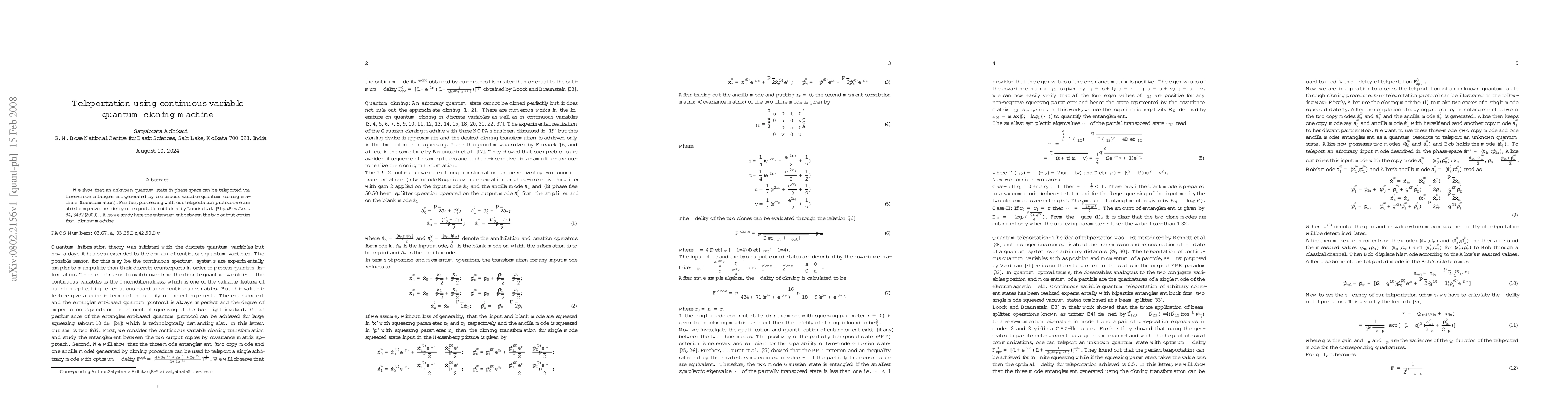 This paper demonstrates teleportation of an unknown quantum state using a continuous variable quantum cloning machine, achieving higher fidelity than previous methods, and explores the entanglement between the resulting cloned copies.