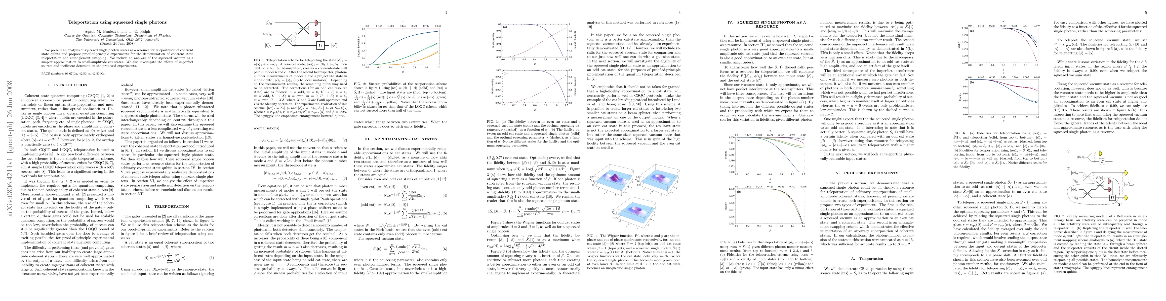This paper analyzes the use of squeezed single photon states for coherent state qubit teleportation and proposes experimental demonstrations of this method, including entanglement swapping. It also examines the impact of imperfect sources and detection inefficiencies on the proposed teleportation protocols.