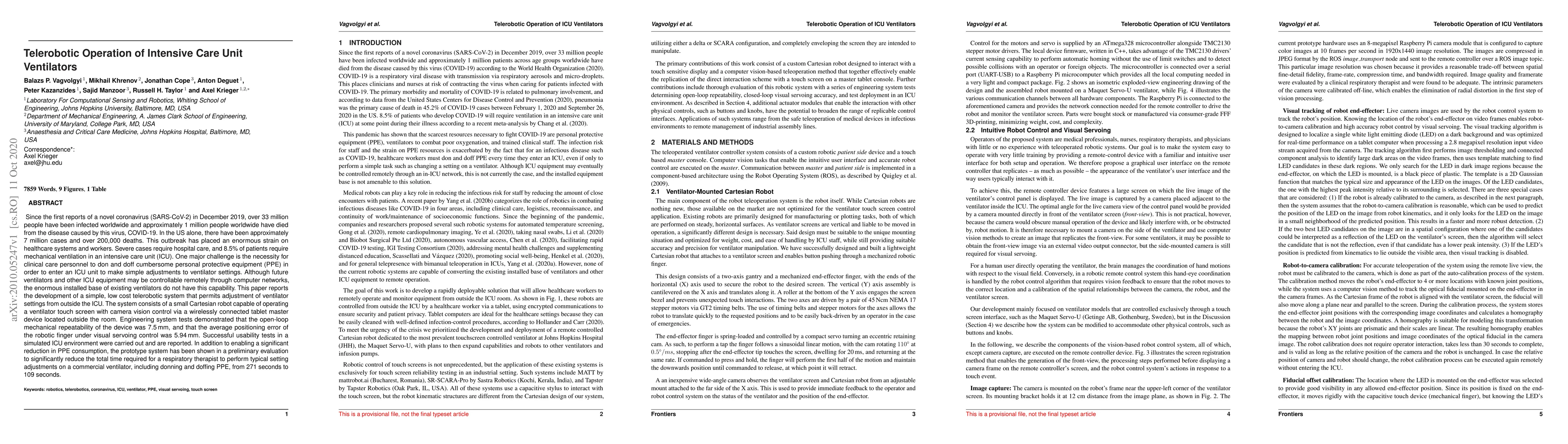 The system uses a small robot to operate a ventilator touch screen with camera vision control via a tablet master device, demonstrating promise for improving ICU efficiency during the COVID-19 pandemic.