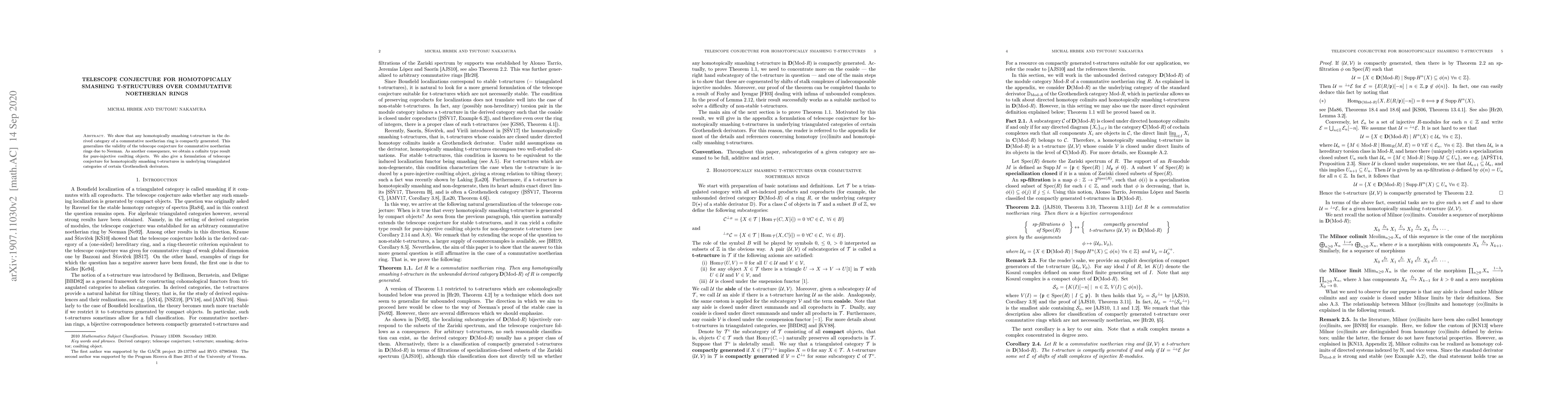 Summary: This paper proves the telescope conjecture for homotopically smashing t-structures in the derived category of commutative noetherian rings, showing their compactness and extending previous results by Neeman. It also introduces a cofinite type result for pure-injective cosilting objects.