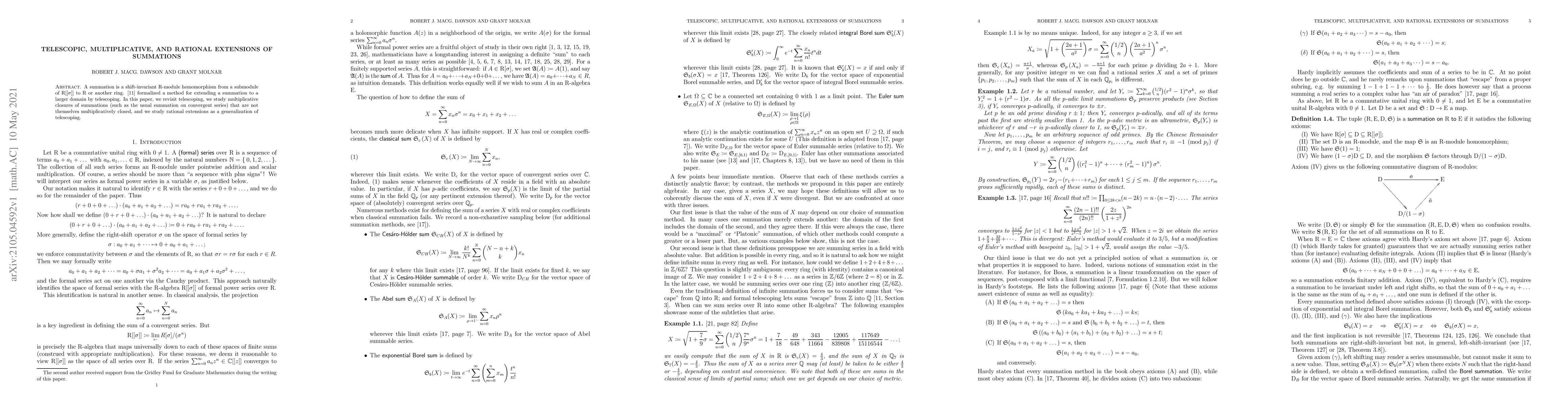 A summation is a shift-invariant ${\rm R}$-module homomorphism from a submodule of ${\rm R}[[\sigma]]$ to ${\rm R}$ or another ring. [11] formalized a method for extending a summation to a larger domain by telescoping. In this paper, we revisit telescoping, we study multiplicative closures of summations (such as the usual summation on convergent series) that are not themselves multiplicatively closed, and we study rational extensions as a generalization of telescoping.