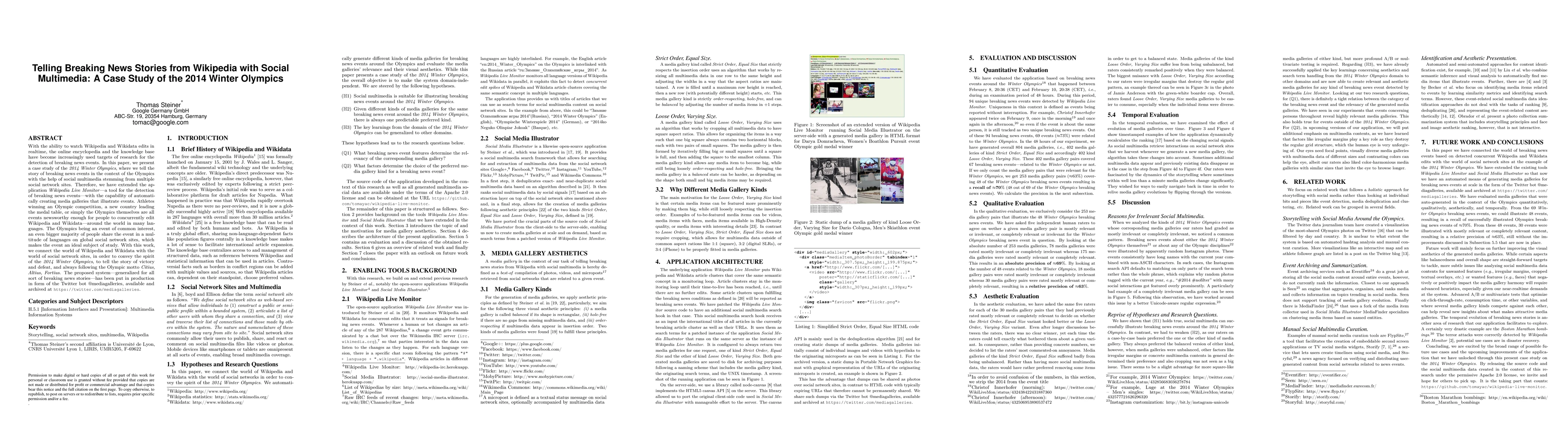 This paper investigates the use of real-time Wikipedia and Wikidata edits to detect breaking news during the 2014 Winter Olympics, integrating social multimedia to tell the story of these events. The study extends Wikipedia Live Monitor to automatically create media galleries, connecting Wikipedia edits with social media to convey the Olympic spirit and highlight significant moments.