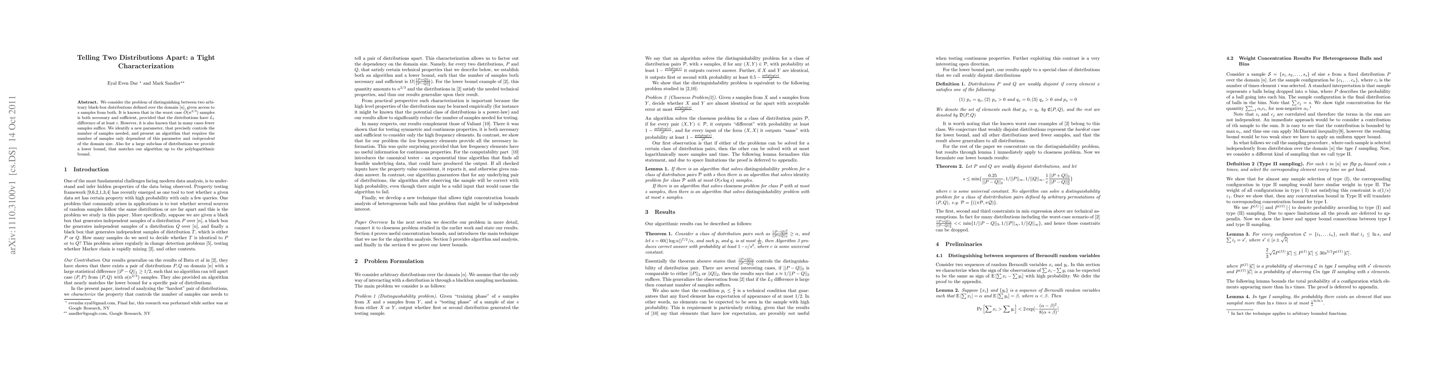 We consider the problem of distinguishing between two arbitrary black-box distributions defined over the domain [n], given access to $s$ samples from both. It is known that in the worst case O(n^{2/3}) samples is both necessary and sufficient, provided that the distributions have L1 difference of at least {\epsilon}. However, it is also known that in many cases fewer samples suffice. We identify a new parameter, that provides an upper bound on how many samples needed, and present an efficient algorithm that requires the number of samples independent of the domain size. Also for a large subclass of distributions we provide a lower bound, that matches our upper bound up to a poly-logarithmic factor.