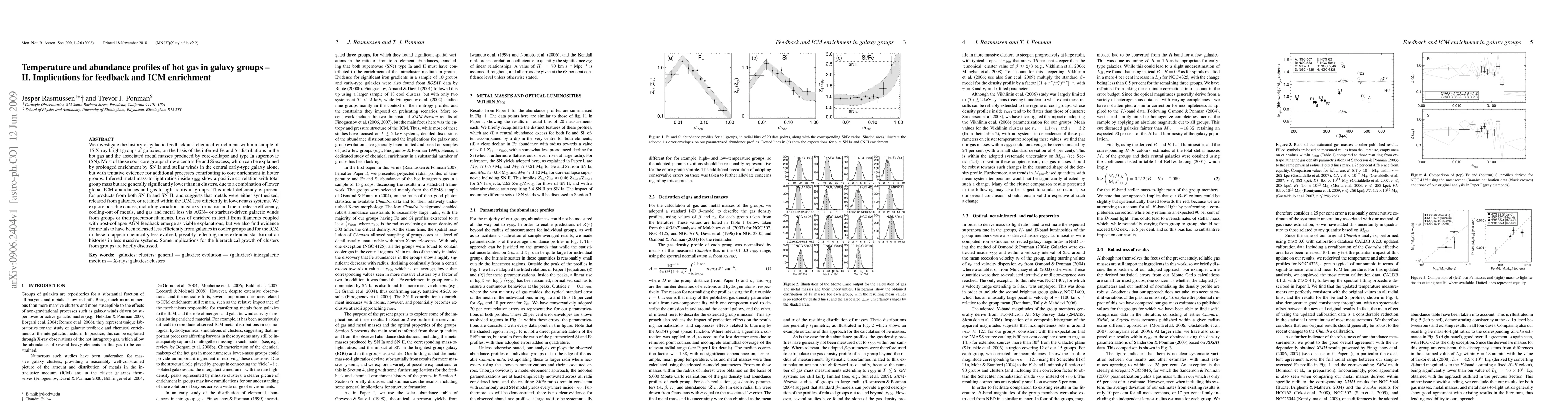 This paper examines the chemical enrichment and feedback processes in 15 X-ray bright groups of galaxies, revealing that central Fe and Si excesses suggest prolonged enrichment by supernovae and stellar winds. The study finds lower metal mass-to-light ratios in groups compared to clusters, indicating less efficient metal synthesis and retention in lower-mass systems, potentially due to variations in galaxy formation and AGN feedback.