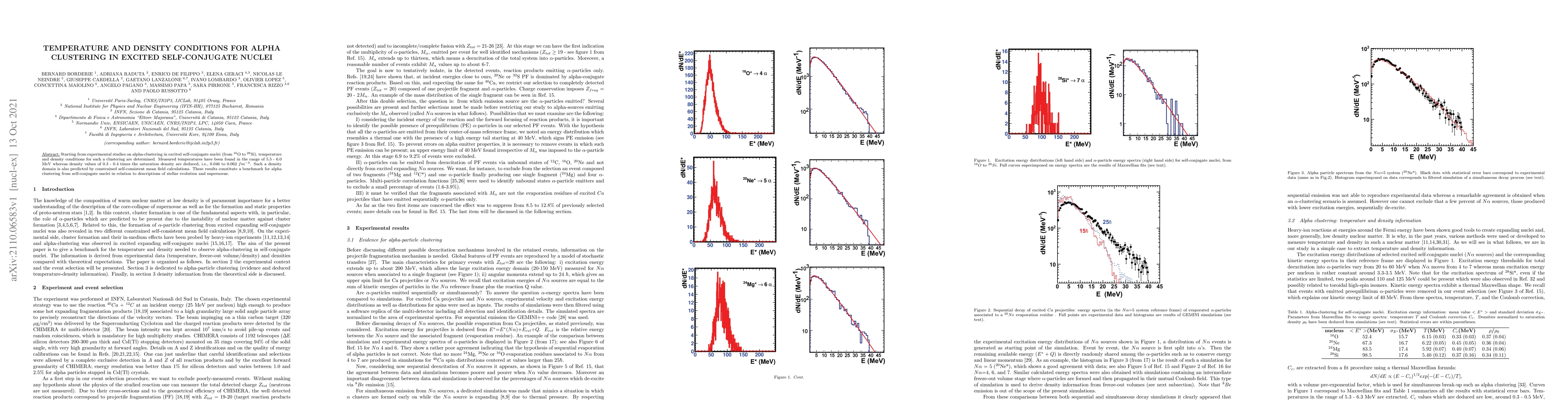 This paper determines the temperature and density conditions for alpha clustering in excited self-conjugate nuclei, finding temperatures of 5.5-6.0 MeV and densities of 0.046-0.062 $fm^{-3}$, which are benchmark values for understanding phenomena in stellar evolution and supernovae.