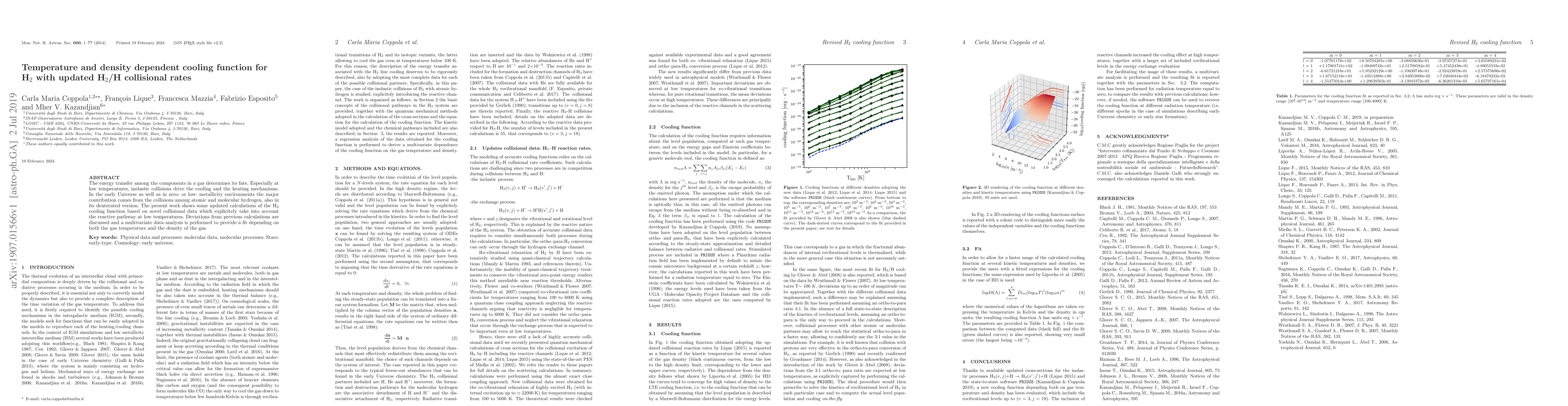 The energy transfer among the components in a gas determines its fate. Especially at low temperatures, inelastic collisions drive the cooling and the heating mechanisms. In the early Universe as well as in zero- or low- metallicity environments the major contribution comes from the collisions among atomic and molecular hydrogen, also in its deuterated version. The present work shows some updated calculations of the H$_2$ cooling function based on novel collisional data which explicitely take into account the reactive pathway at low temperatures. Deviations from previous calculations are discussed and a multivariate data analysis is performed to provide a fit depending on both the gas temperature and the density of the gas.
