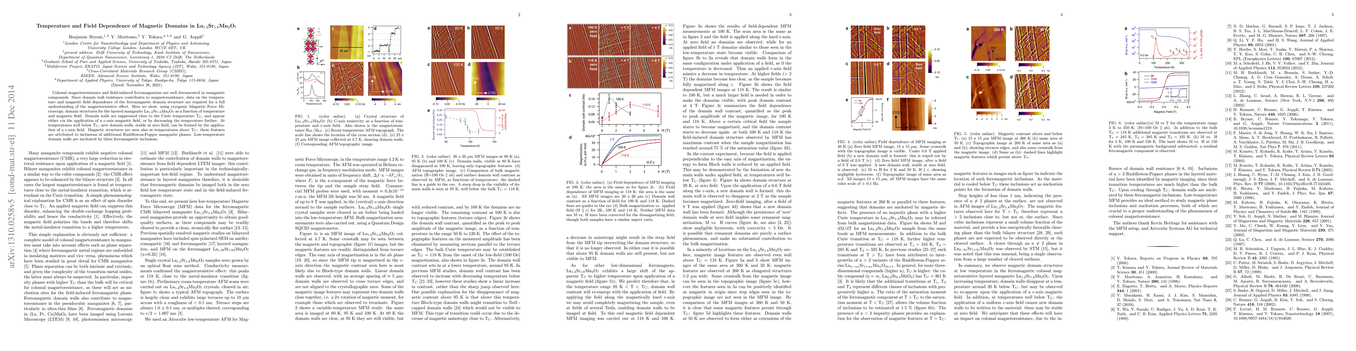 Researchers studied the temperature and magnetic field dependence of magnetic domains in a manganite compound, finding that domain walls are suppressed near the Curie temperature but can form at lower temperatures with an applied magnetic field or below it.