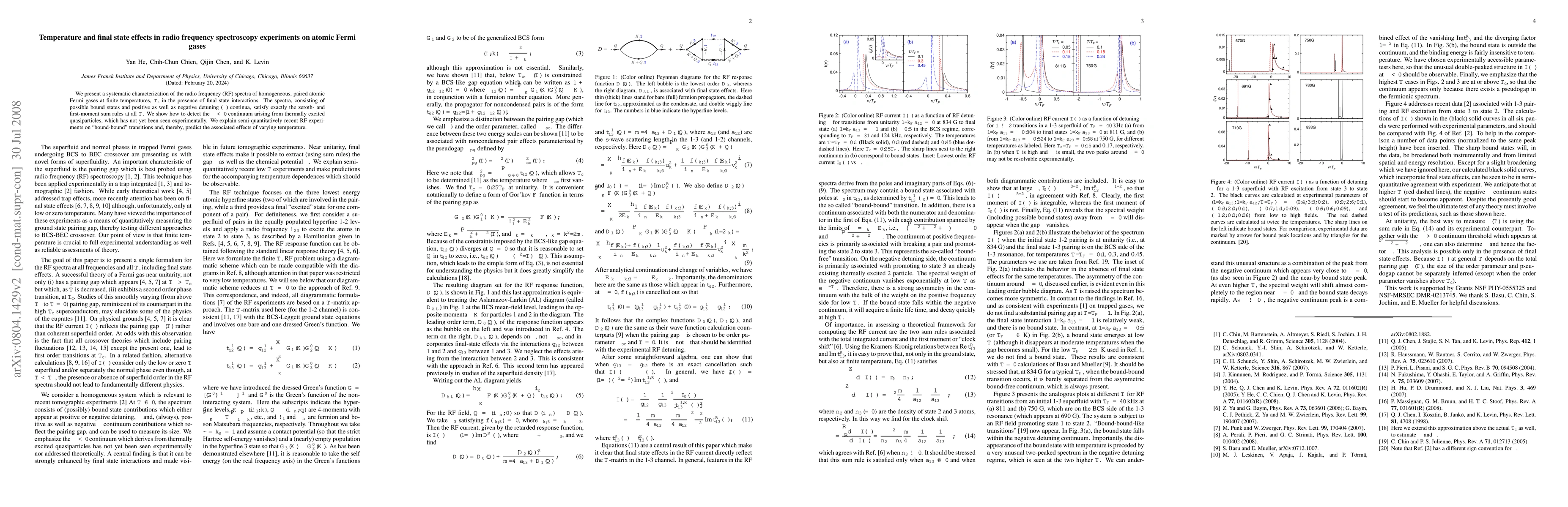This paper systematically characterizes radio frequency spectra of atomic Fermi gases at finite temperatures, revealing the presence of bound states and positive and negative detuning continua. It predicts the detection of the previously unseen negative detuning continuum from thermally excited quasiparticles and explains recent RF experiments on "bound-bound" transitions, predicting temperature-dependent effects.