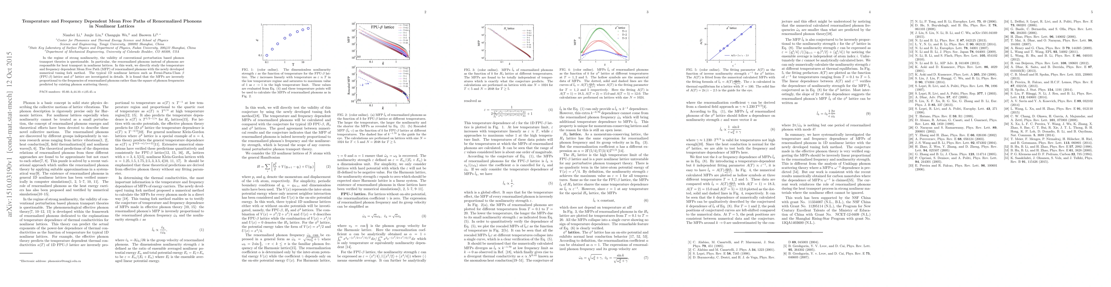 This paper investigates the temperature and frequency dependent Mean Free Paths (MFPs) of renormalized phonons in strongly nonlinear lattices using a new numerical method. Contrary to existing phonon scattering theory, the study finds that MFPs are inversely proportional to phonon frequencies rather than their squares.
