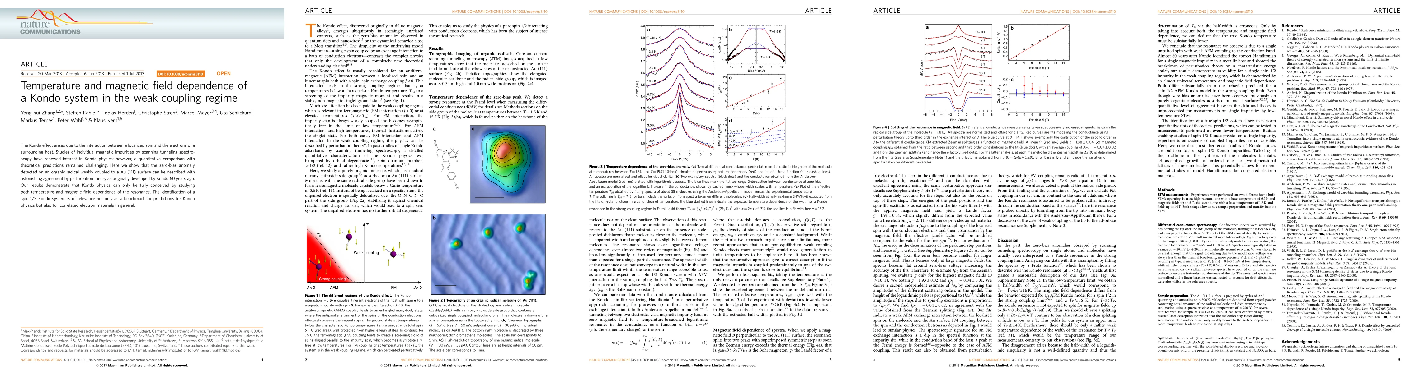 This study investigates the Kondo effect in a weakly coupled organic radical on a Au (111) surface using scanning tunneling spectroscopy, revealing a zero-bias anomaly that aligns well with Kondo's original perturbation theory. The findings underscore the necessity of considering both temperature and magnetic field to fully understand Kondo physics.