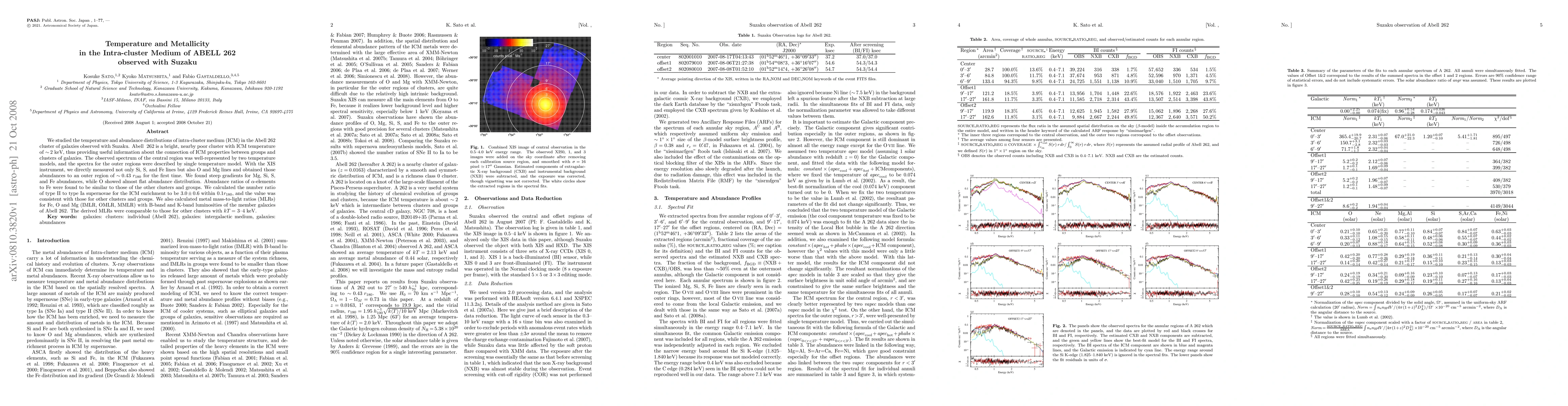 We studied the temperature and abundance distributions of intra-cluster medium (ICM) in the Abell 262 cluster of galaxies observed with Suzaku. Abell 262 is a bright, nearby poor cluster with ICM temperature of ~2 keV, thus providing useful information about the connection of ICM properties between groups and clusters of galaxies. The observed spectrum of the central region was well-represented by two temperature models, and the spectra for the outer regions were described by single temperature model. With the XIS instrument, we directly measured not only Si, S, and Fe lines but also O and Mg lines and obtained those abundances to an outer region of ~0.43 r_180 for the first time. We found steep gradients for Mg, Si, S, and Fe abundances, while O showed almost flat abundance distribution. Abundance ratios of alpha-elements to Fe were found to be similar to those of the other clusters and groups. We calculated the number ratio of type II to type Ia supernovae for the ICM enrichment to be 3.0 +- 0.6 within 0.1 r_180, and the value was consistent with those for other clusters and groups. We also calculated metal mass-to-light ratios (MLRs) for Fe, O and Mg (IMLR, OMLR, MMLR) with B-band and K-band luminosities of the member galaxies of Abell 262. The derived MLRs were comparable to those for other clusters with kT = 3-4 keV.
