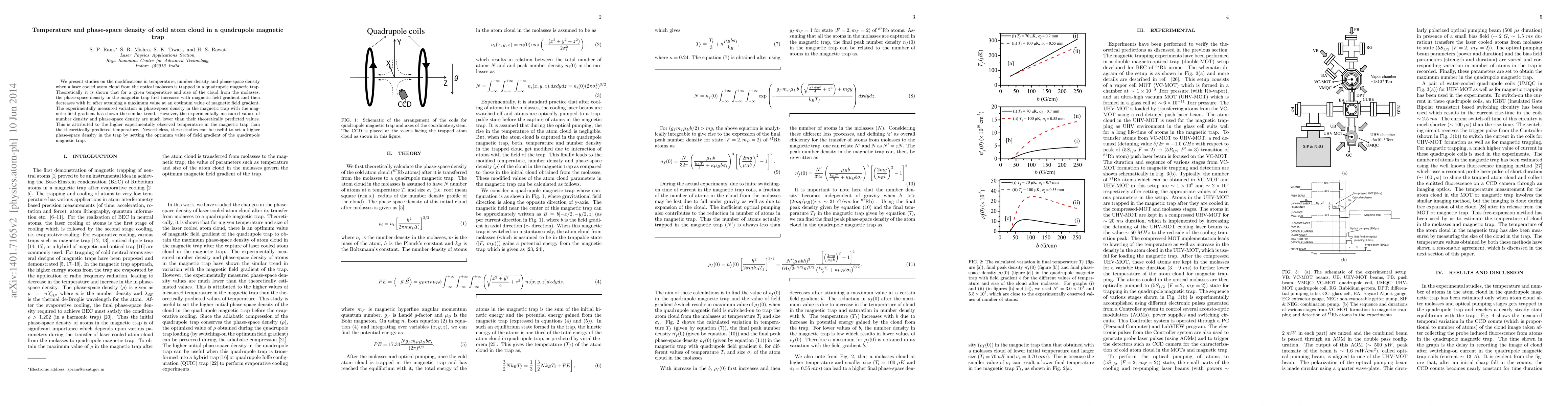 This work extends previous studies by providing a comprehensive analysis of temperature and phase-space density in a quadrupole magnetic trap, identifying conditions for maximizing phase-space density, which is essential for future evaporative cooling stages.
