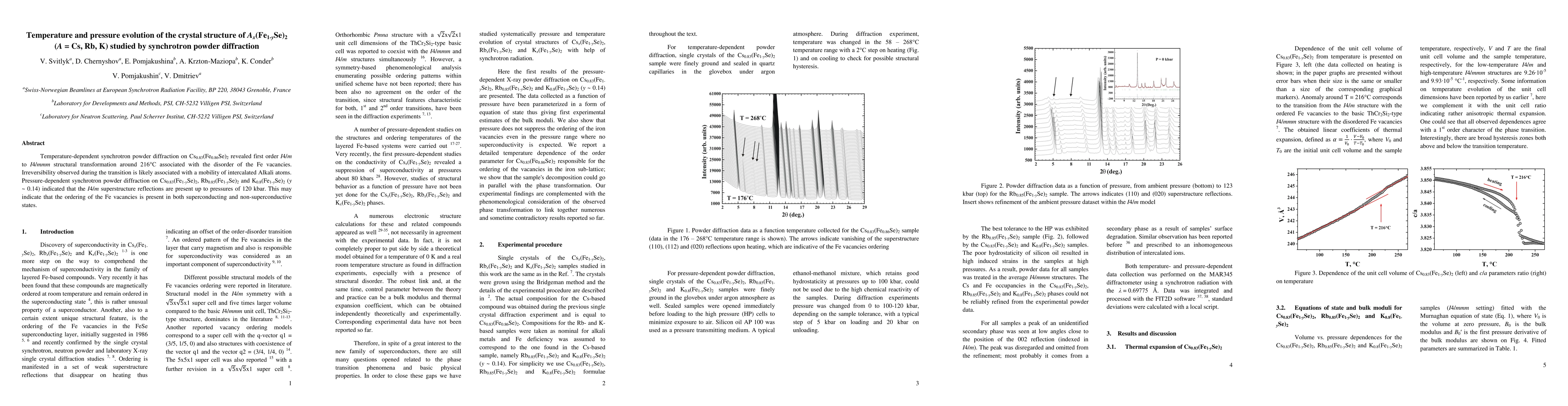 Researchers studied how the crystal structure of a material changes with temperature and pressure, finding that it transforms at 216°C and remains stable under high pressure. This suggests the ordering of iron vacancies is present in both superconducting and non-superconductive states.