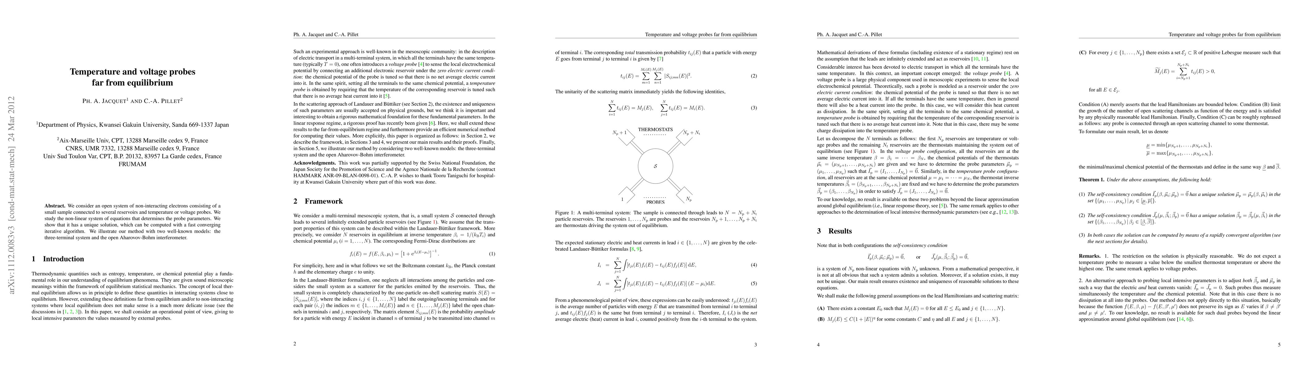 We consider an open system of non-interacting electrons consisting of a small sample connected to several reservoirs and temperature or voltage probes. We study the non-linear system of equations that determines the probe parameters. We show that it has a unique solution, which can be computed with a fast converging iterative algorithm. We illustrate our method with two well-known models: the three-terminal system and the open Aharovov-Bohm interferometer.